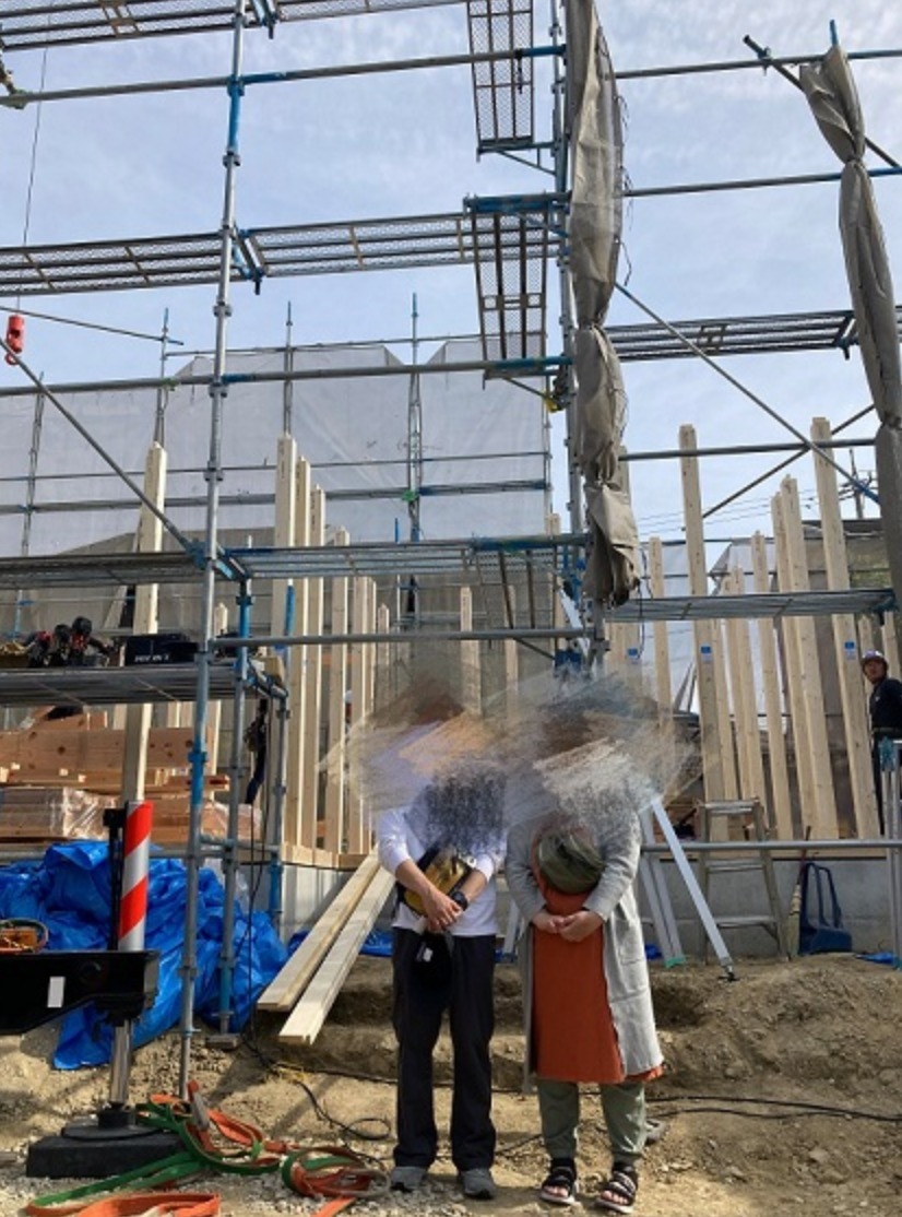 お近くにお住いのお父様お母様にも来ていただき、上棟前のあいさつからスタート!