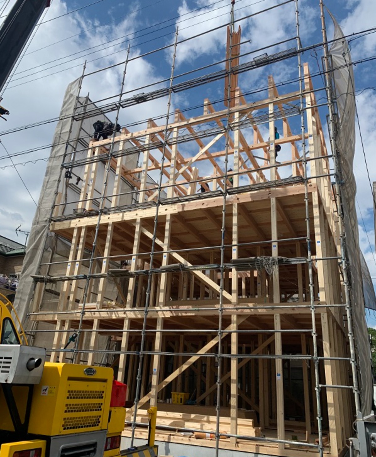明日から天気が悪くなるようなので、雨・風養生もしっかりしてもらうよう職人さんたちにお願いしました。