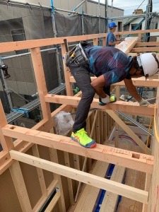素晴らしいチームワークでみるみる家の形になっていきます!