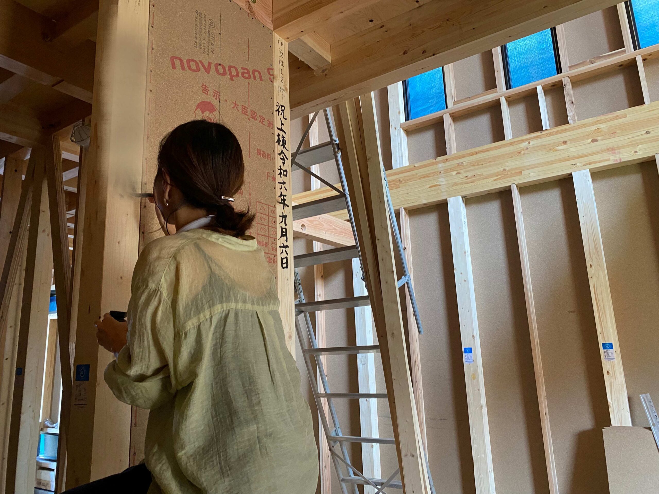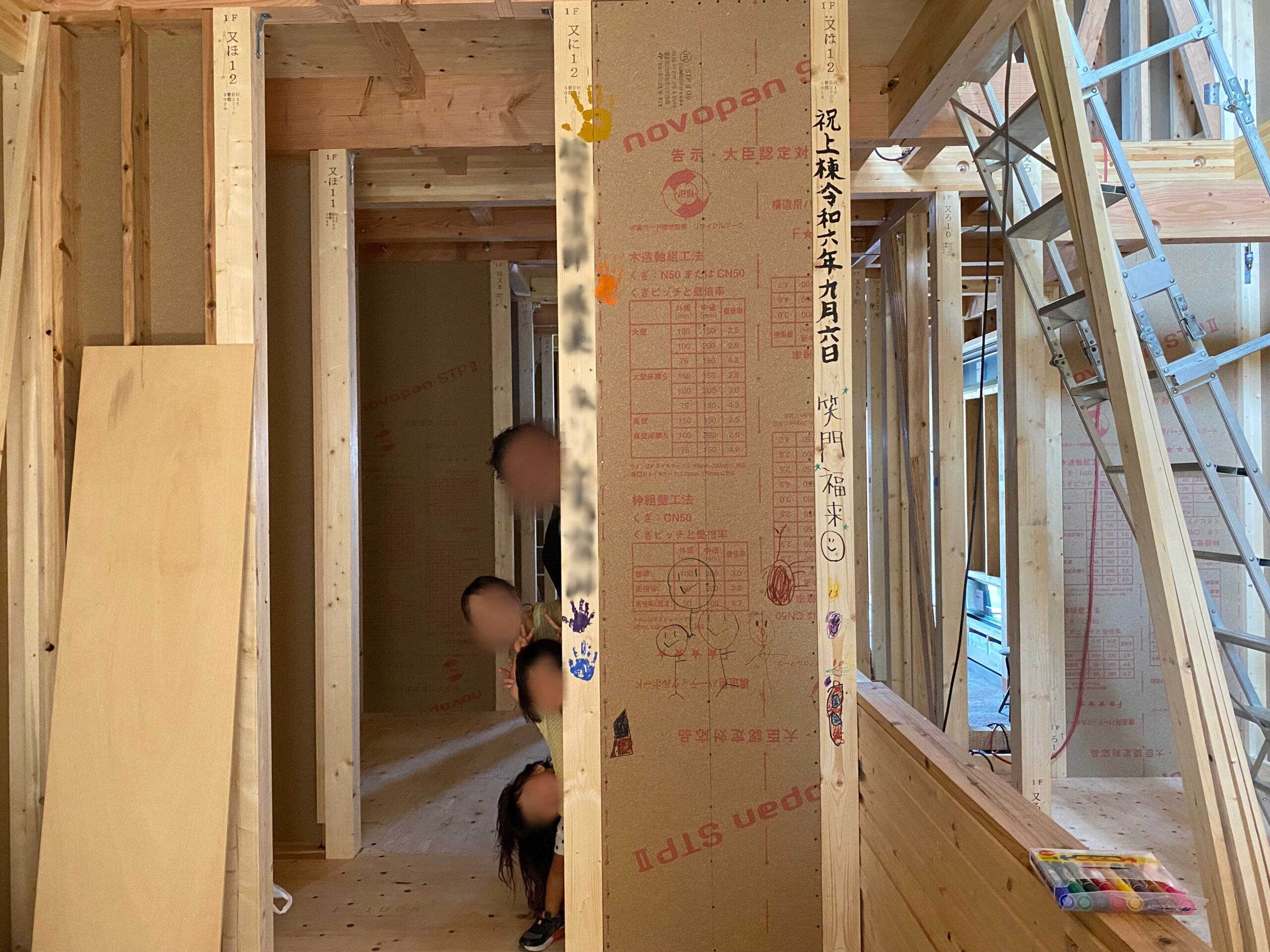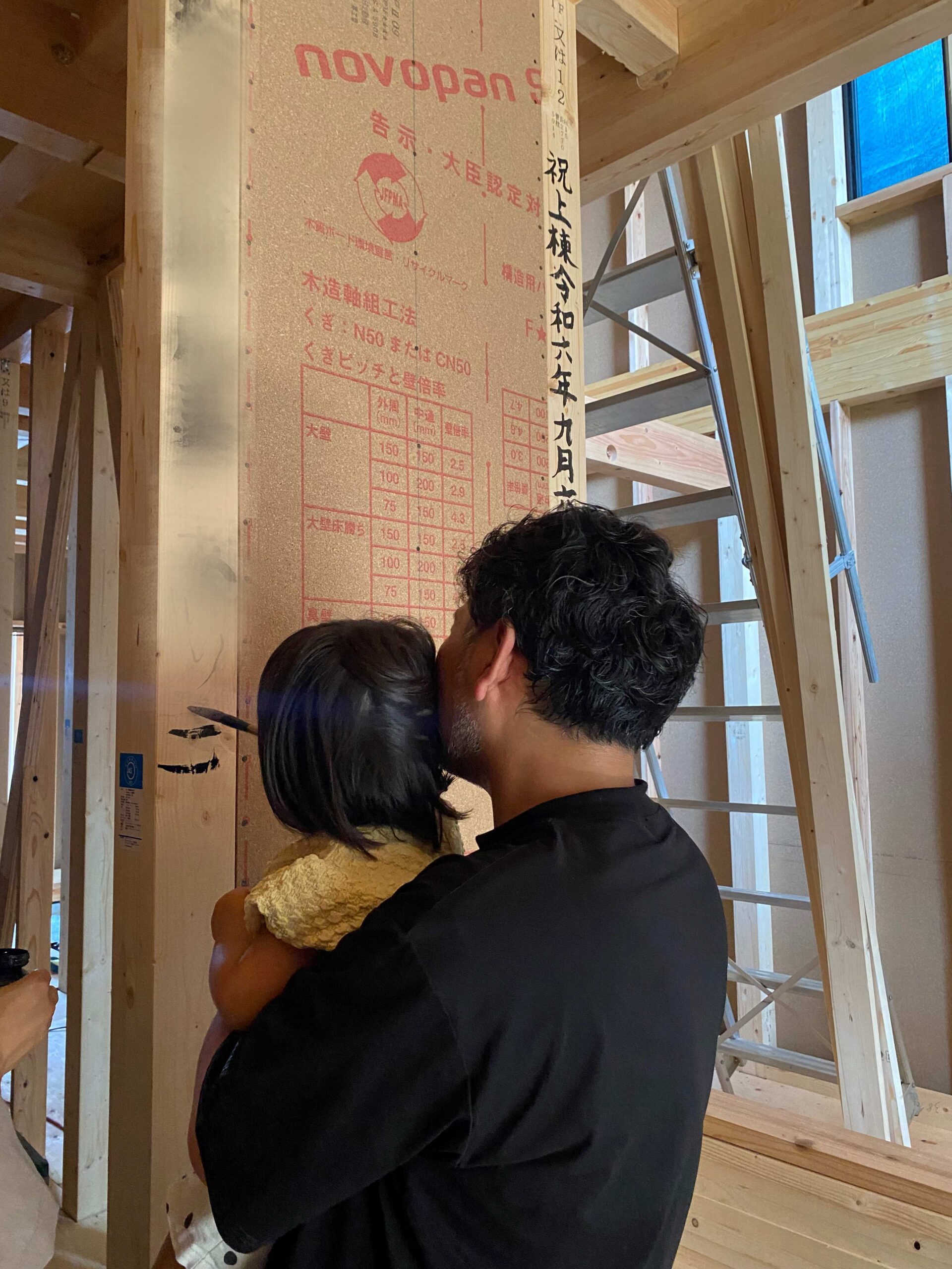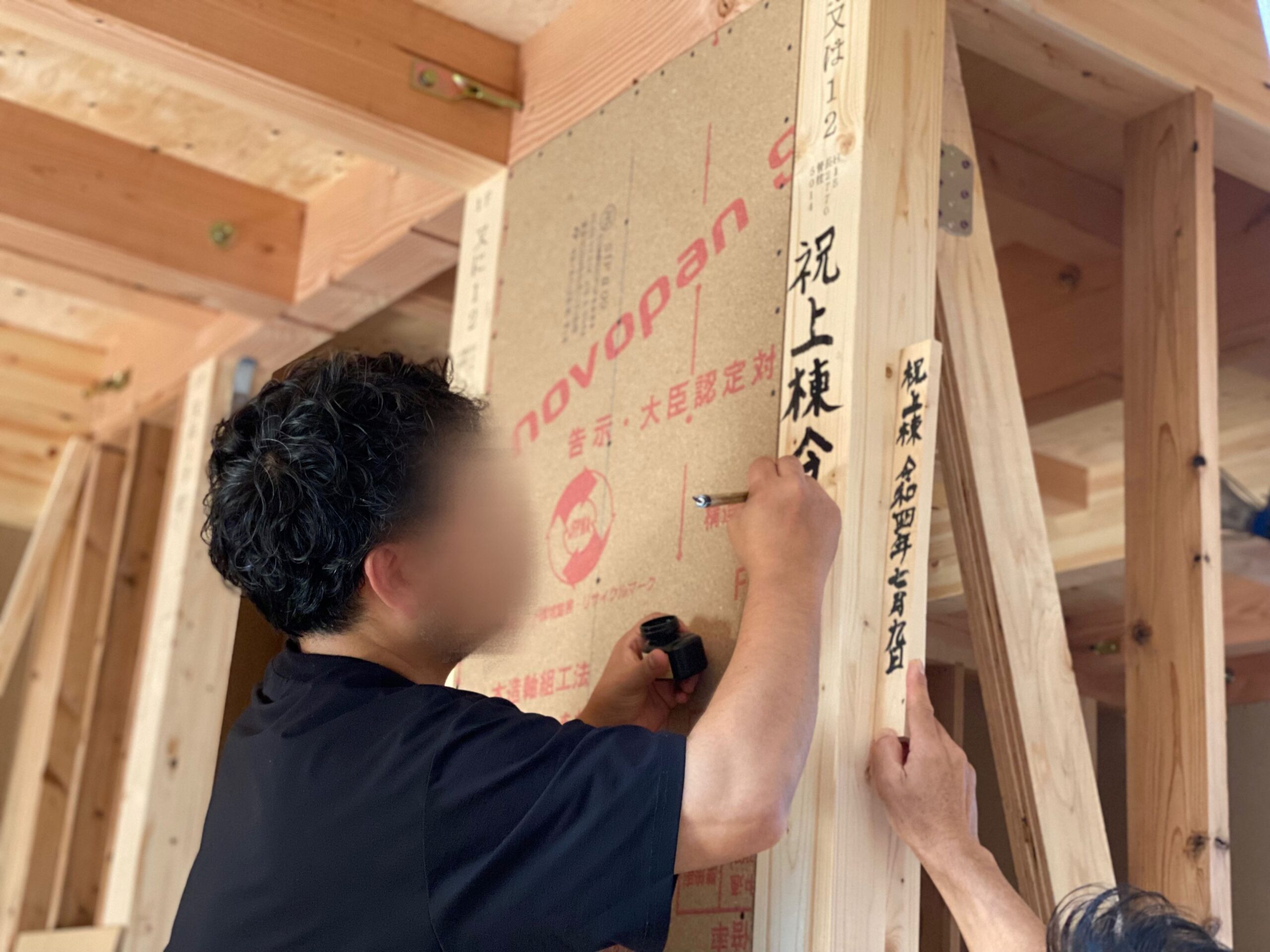 まずは旦那様に上棟日とお名前を上手に書いていただいて、、、