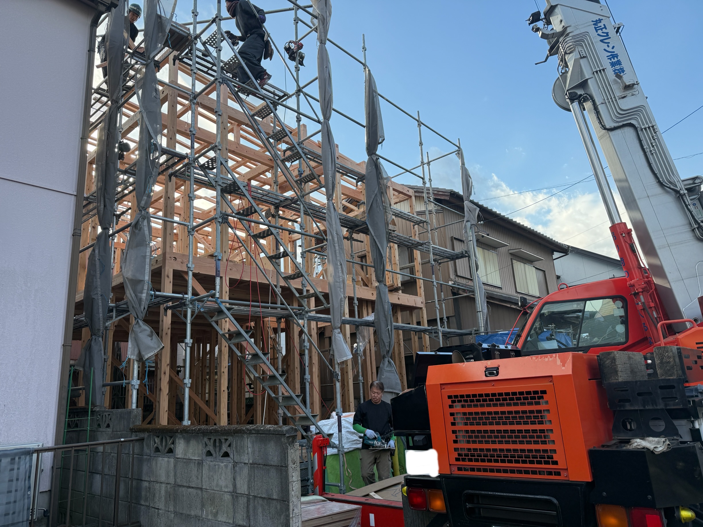 ご家族で記念撮影もバッチリ終えて、上棟スタートです!