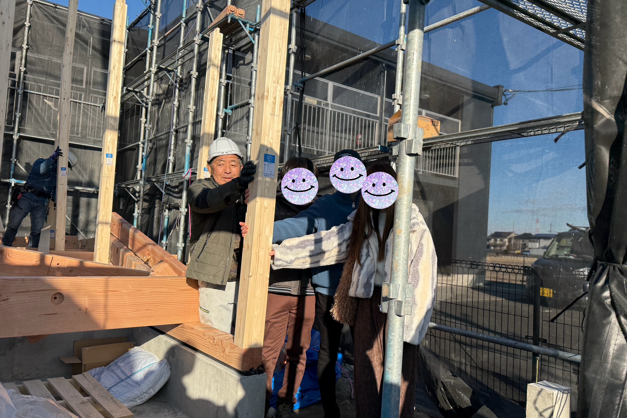棟梁とご家族で記念撮影も終えて、上棟スタートです!