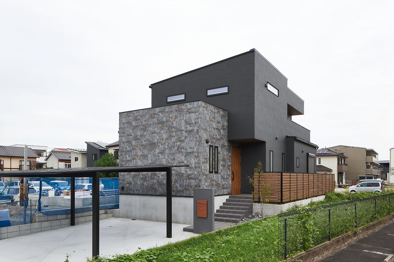 外観は奥様がお好きだというブラックとグレーを基調にしたカッコイイテイストに。