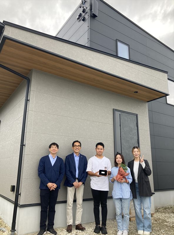 施主様はちょうどお引越しも当日で、お忙しい中での受け渡しでしたが、笑顔あふれる素敵なひと時となりました。