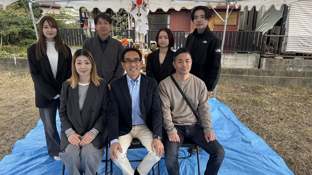 秋晴れの気持ちいいお天気の中、スタッフみんなで工事の安全と完成を祈願。