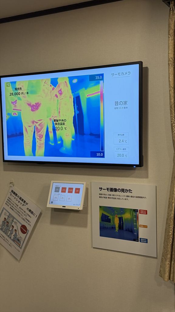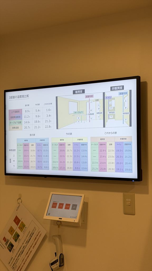 左の写真はリアルタイムの 昔の家 今の家 これからの家 の温度がわかるように管理されています!