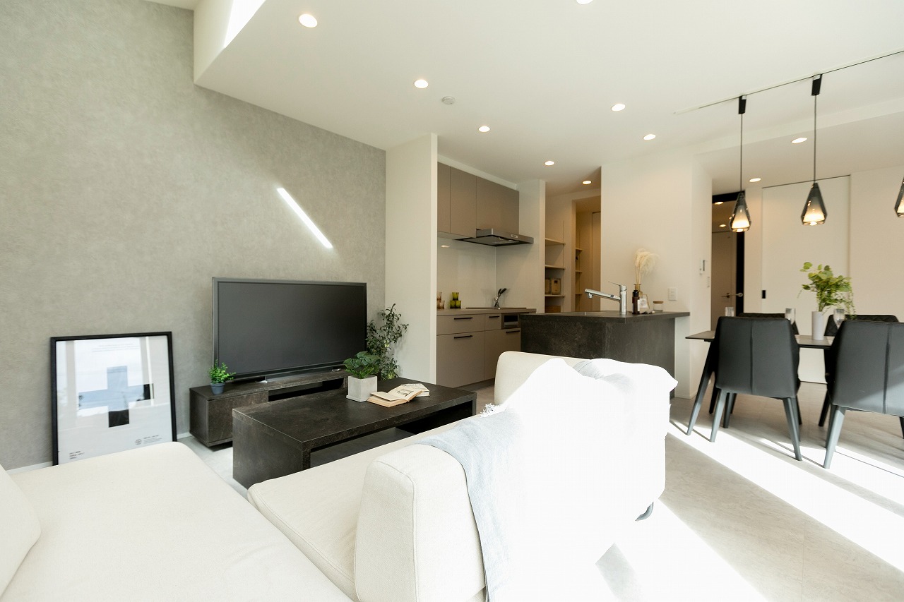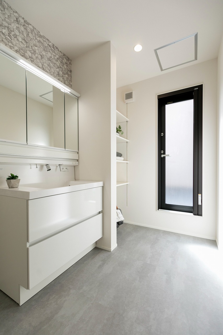 分譲住宅 ホテルライクなモノトーンハウス 中川区水里分譲 Exterior 外壁はアメリカ製漆喰メーカー、オメガ社の塗壁を採用。グレージュ×ブラックの色合わせで和モダンテイストの外観に仕上げました。シンプルなスクエア型の外観は他にはないモダンな印象も与えてくれます。 Living & Dining Kitchen Washroom ホワイトとグレーでまとめた洗面脱衣室は清潔感たっぷり Restroom Bed Room Walk-in Closet 一覧へ 前へ 次へ