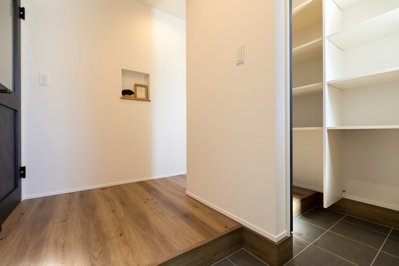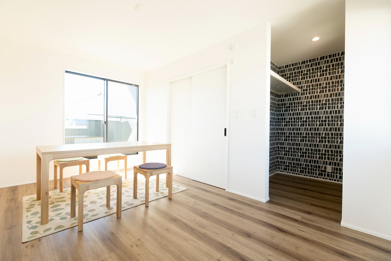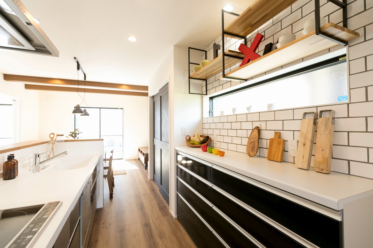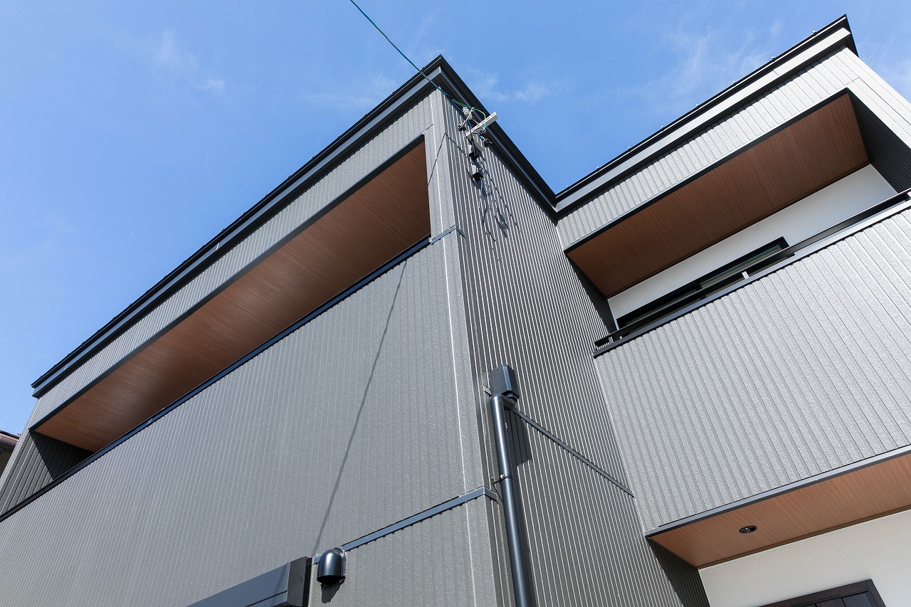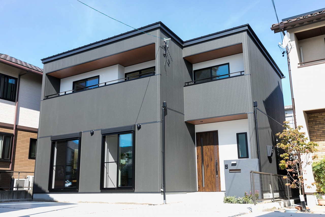 分譲住宅 白さ輝くアメリカンヴィンテージハウス 弥富市鯏浦分譲 Exterior グレーの角波サイディングをメインに、ホワイトとウォルナットでアクセントをつけました!内装に合わせ、ヴィンテージライクなイメージで統一感のあるお家に仕上がりました! Balcony Dining Kitchen 吊り戸はあえて既製品ではなくオープンラックでインテリアを楽しむ造りに Japanese Room リビングの雰囲気を壊さぬようテイストを揃えた和室 Entrance Walk-in Closet 一覧へ 前へ 次へ