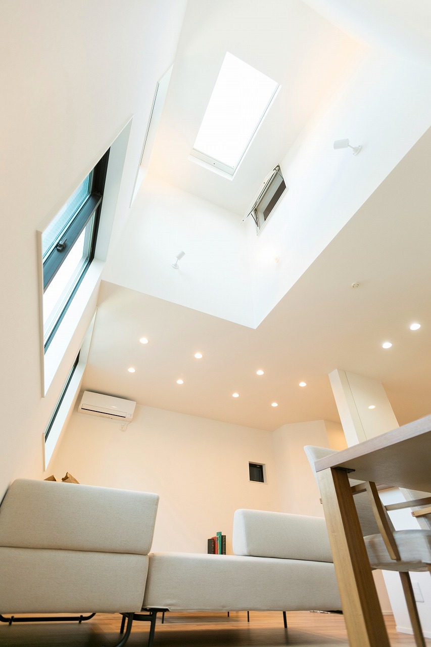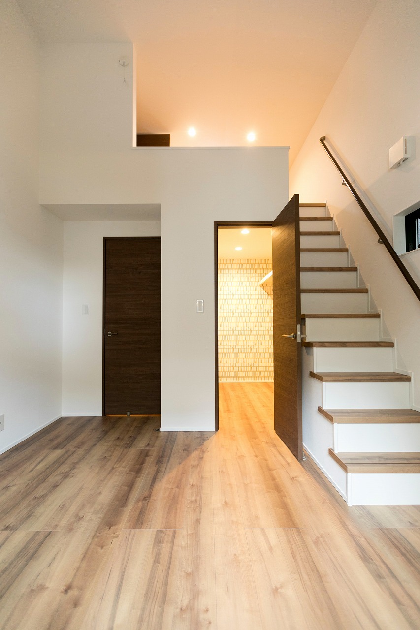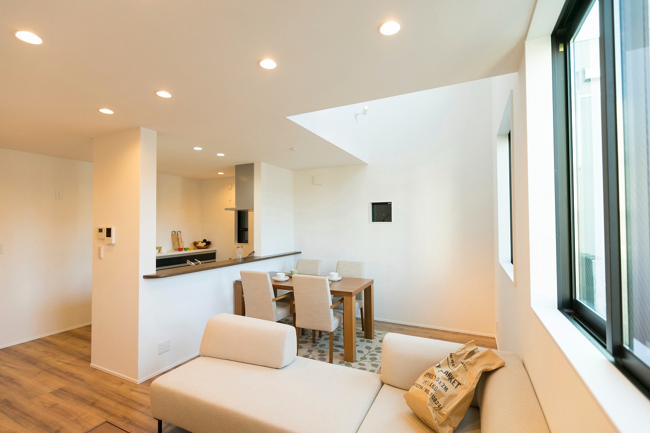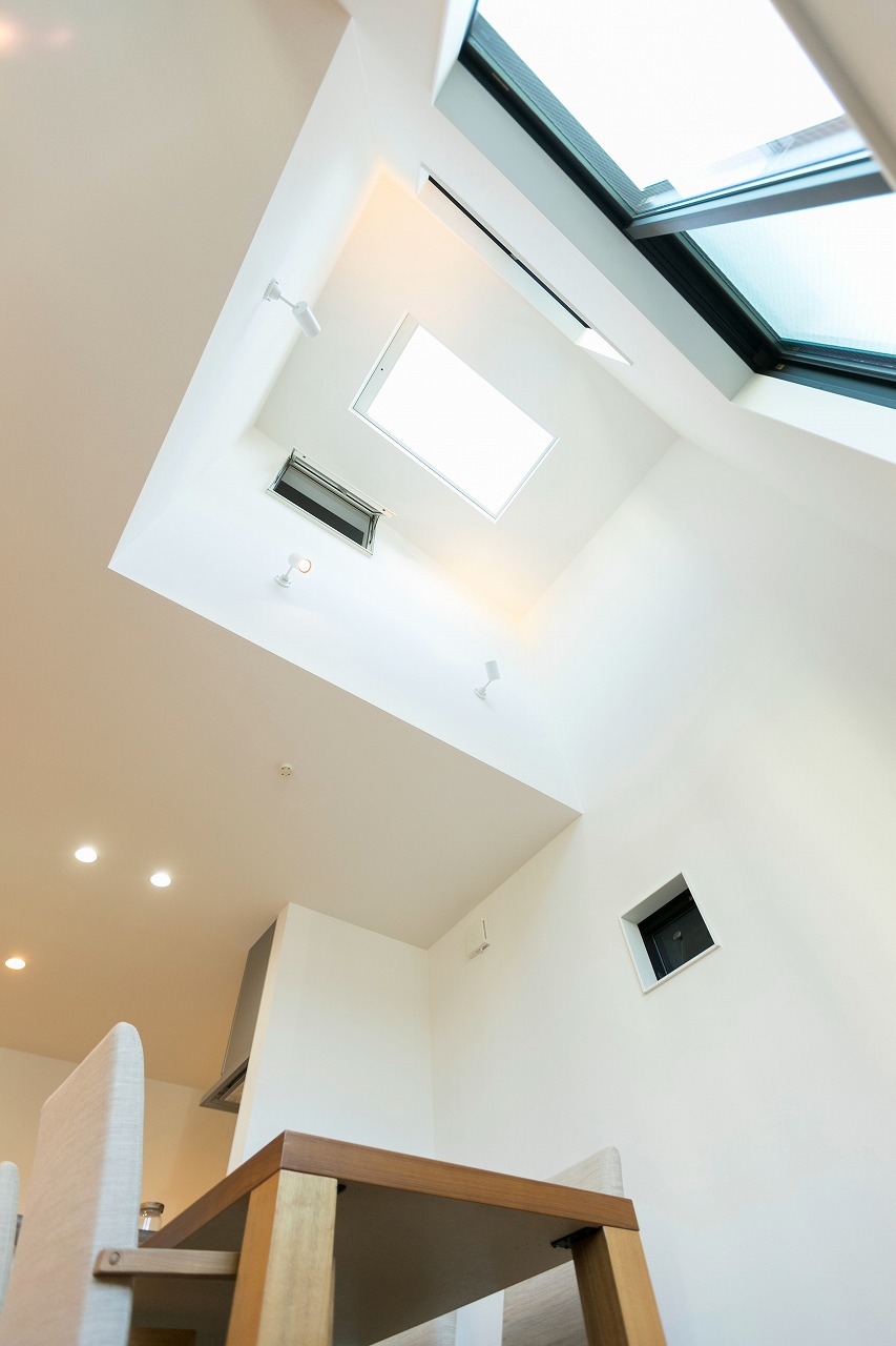 分譲住宅 開放感あるコンパクトな住まい 南区柵下分譲住宅 Exterior ドイツStoの塗壁を正面壁に採用。軒天から入り口付近には木目調サイディングで色柄をプラス。正面から見た壁にスクエア窓をデザイン的に配置。 Rooftop 狭小地に建つ家の屋上には広々とした屋上バルコニー Living & Dining 狭小地を感じさせない16畳ほどのLDK Kitchen 吹き抜けのリビングダイニングで光を取り入れます Entrance Bed Room Loft 一覧へ 前へ 次へ