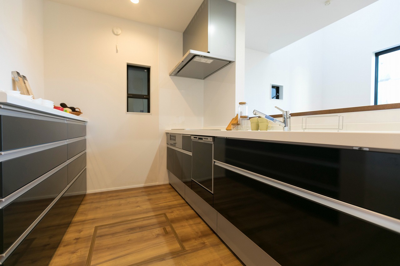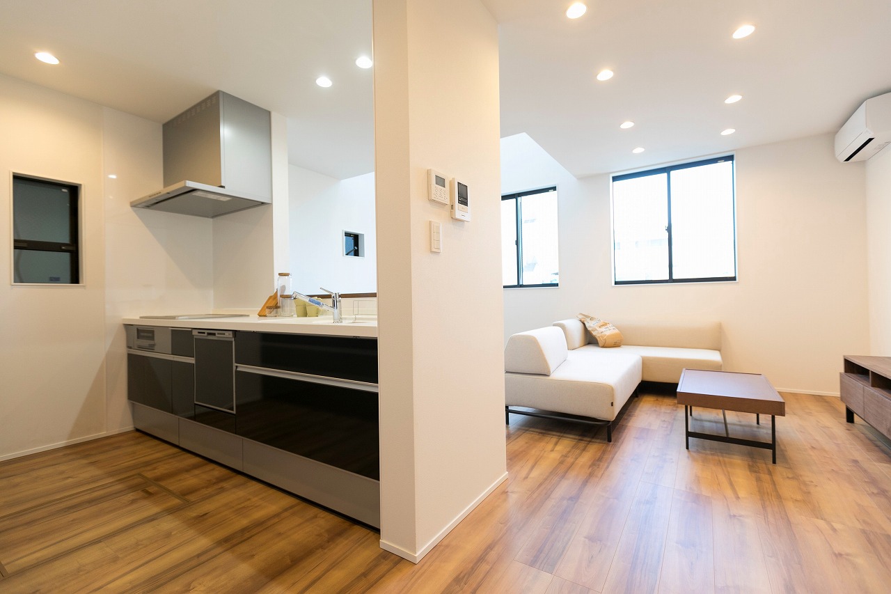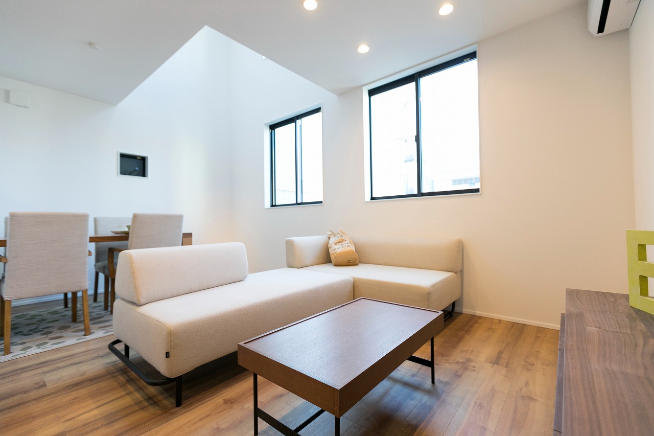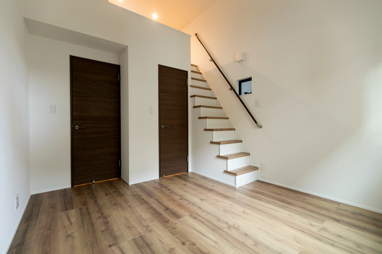 分譲住宅 開放感あるコンパクトな住まい 南区柵下分譲住宅 Exterior ドイツStoの塗壁を正面壁に採用。軒天から入り口付近には木目調サイディングで色柄をプラス。正面から見た壁にスクエア窓をデザイン的に配置。 Rooftop 狭小地に建つ家の屋上には広々とした屋上バルコニー Living & Dining 狭小地を感じさせない16畳ほどのLDK Kitchen 吹き抜けのリビングダイニングで光を取り入れます Entrance Bed Room Loft 一覧へ 前へ 次へ