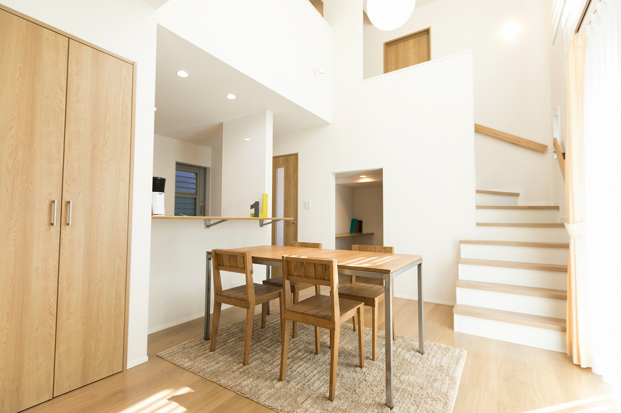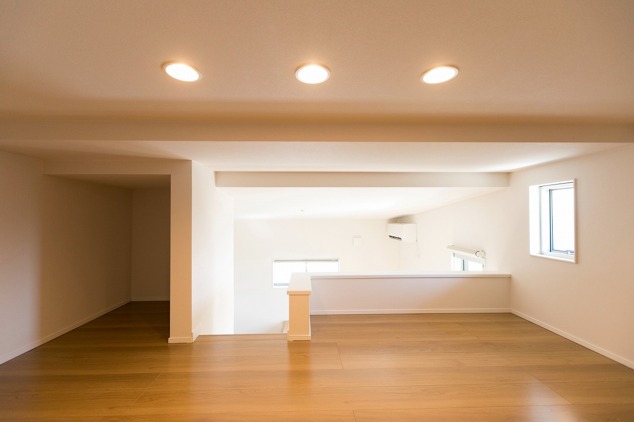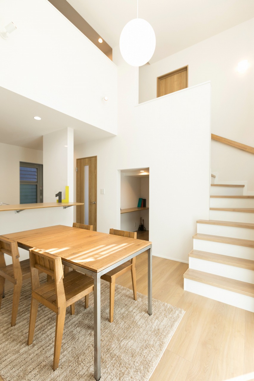 分譲住宅 吹き抜けを覗きこめるカウンターのある家 蟹江町学戸分譲住宅 Exterior 柔らかい雰囲気をイメージさせる白と木目調のサイディングを使用見上げる軒天やバルコニー下部にも木目調を取り入れ、統一感を持たせるようサッシ色はシルバーを使用 Living 吹き抜けから見えるLDKは窓を南側に明るさ抜群 Hall & Counter 吹き抜けに面した廊下部にはファミリーカウンター Japanese Room 約4.5帖の和室にも光が入るように木製ではなくアルミ建具を使用 Entrance Loft Walk-in Closet 一覧へ 前へ 次へ