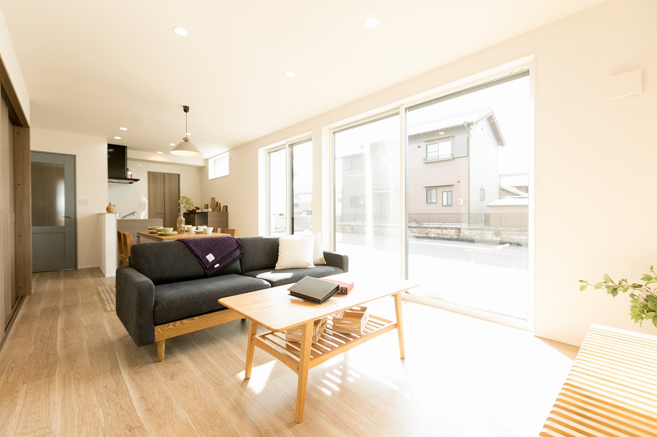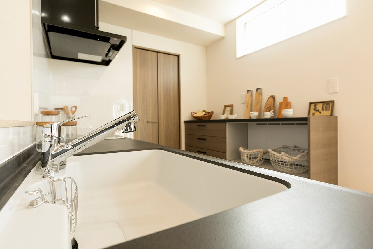 分譲住宅 敷地を生かしたモノトーンスキップハウス 蟹江町今分譲 Exterior ホワイト×ブラック×木目の王道配色でスタイリッシュな外観を演出。細い敷地を最大限に生かしたデザイン設計になっています! Living & Dining 南面のサッシから明るい光が差し込むリビング Kitchen 床建具と色味を合わせたトクラスのキッチンを採用 Washroom 物干しバルコニー直結の家事楽動線 Bed Room Loft 一覧へ 前へ 次へ