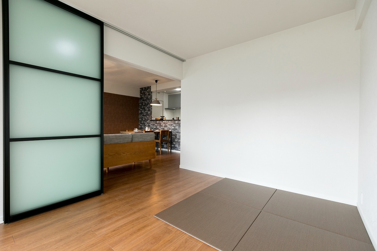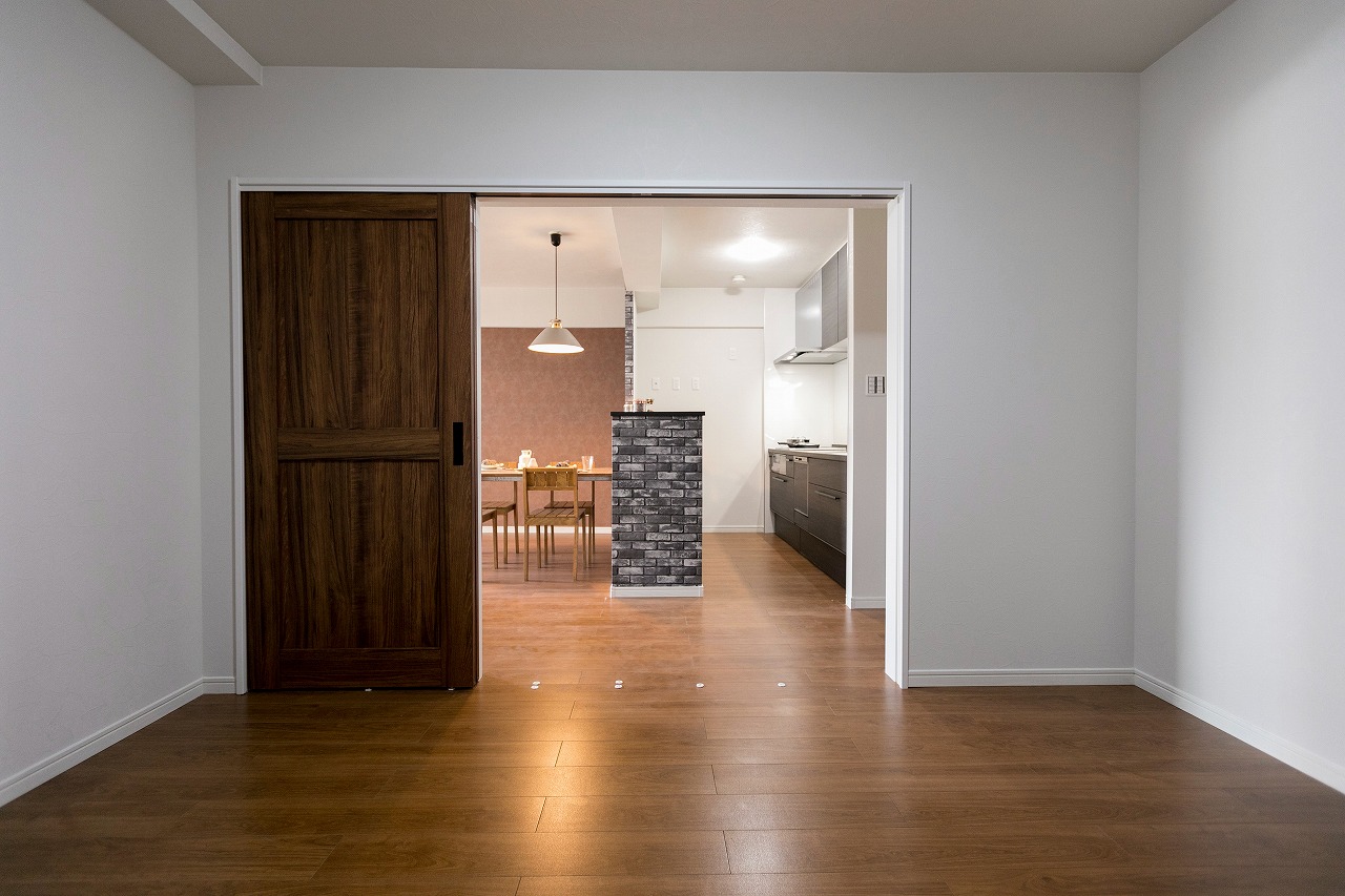 ライフスタイルの変化によって間取りを好きなように変えられるよう、主寝室以外の各部屋は間仕切りを開閉可能な引き戸にしました。