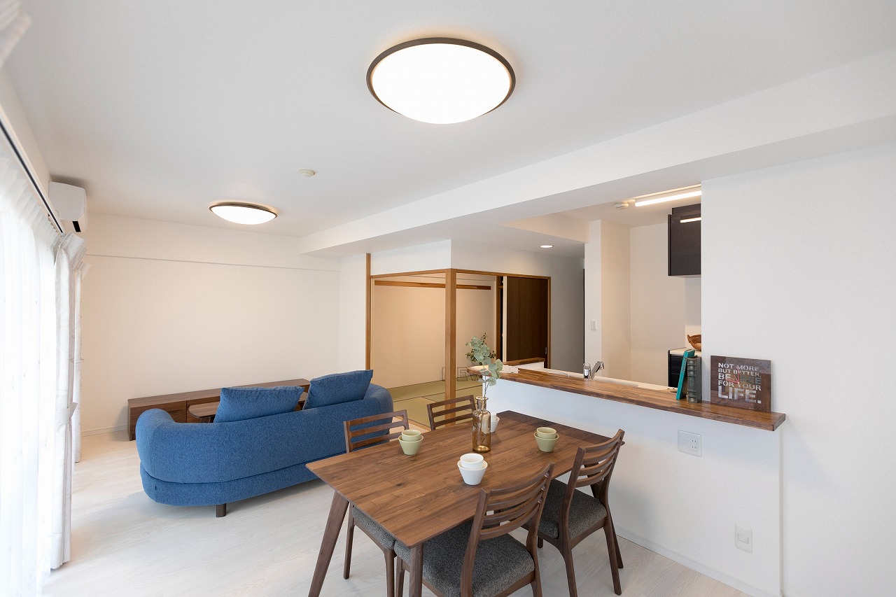 襖を開ければ和室と一体となるような解放感のあるリビング。