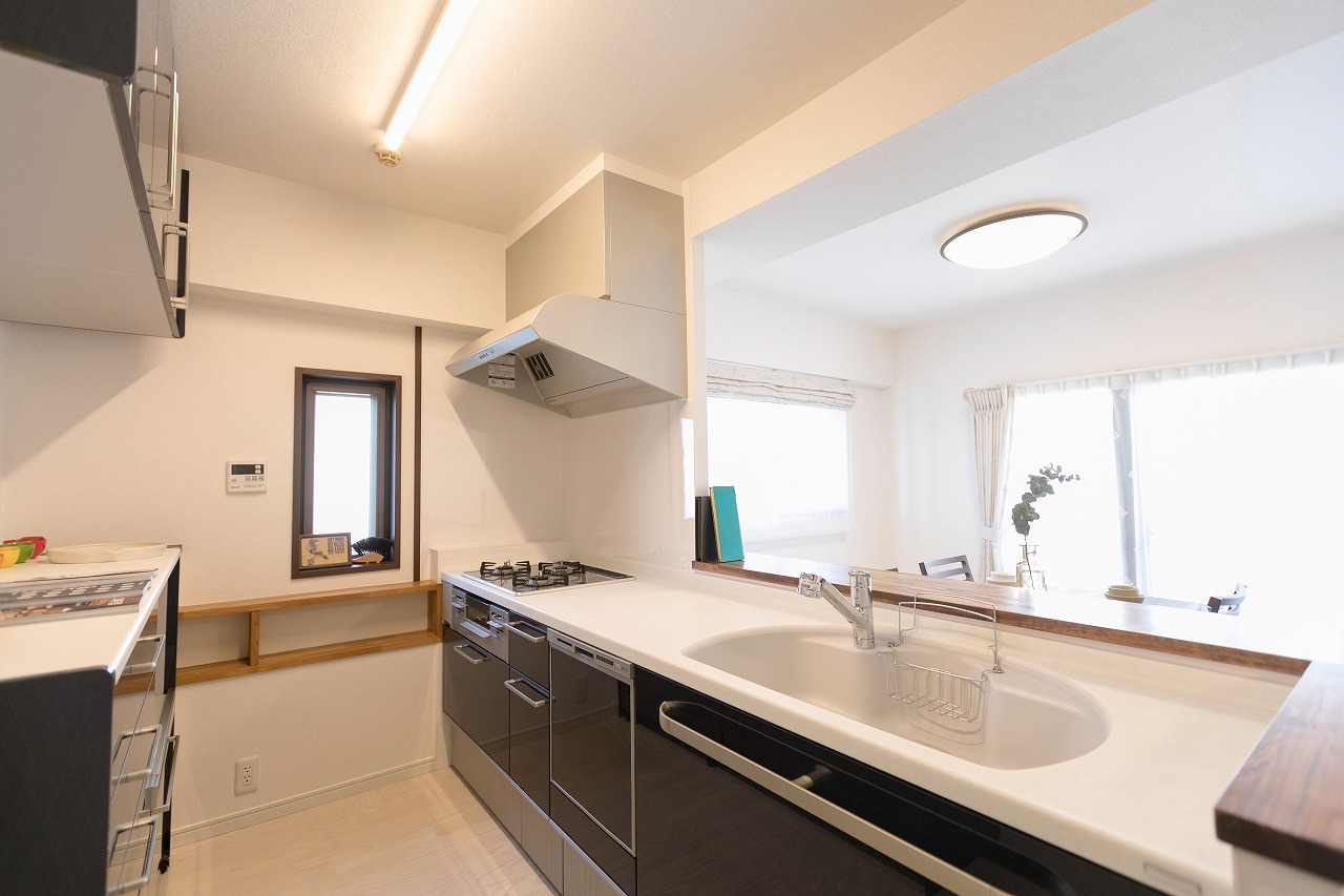 お料理をしながらお部屋全体を見渡せ、窓から景色も楽しめるのがポイントです!