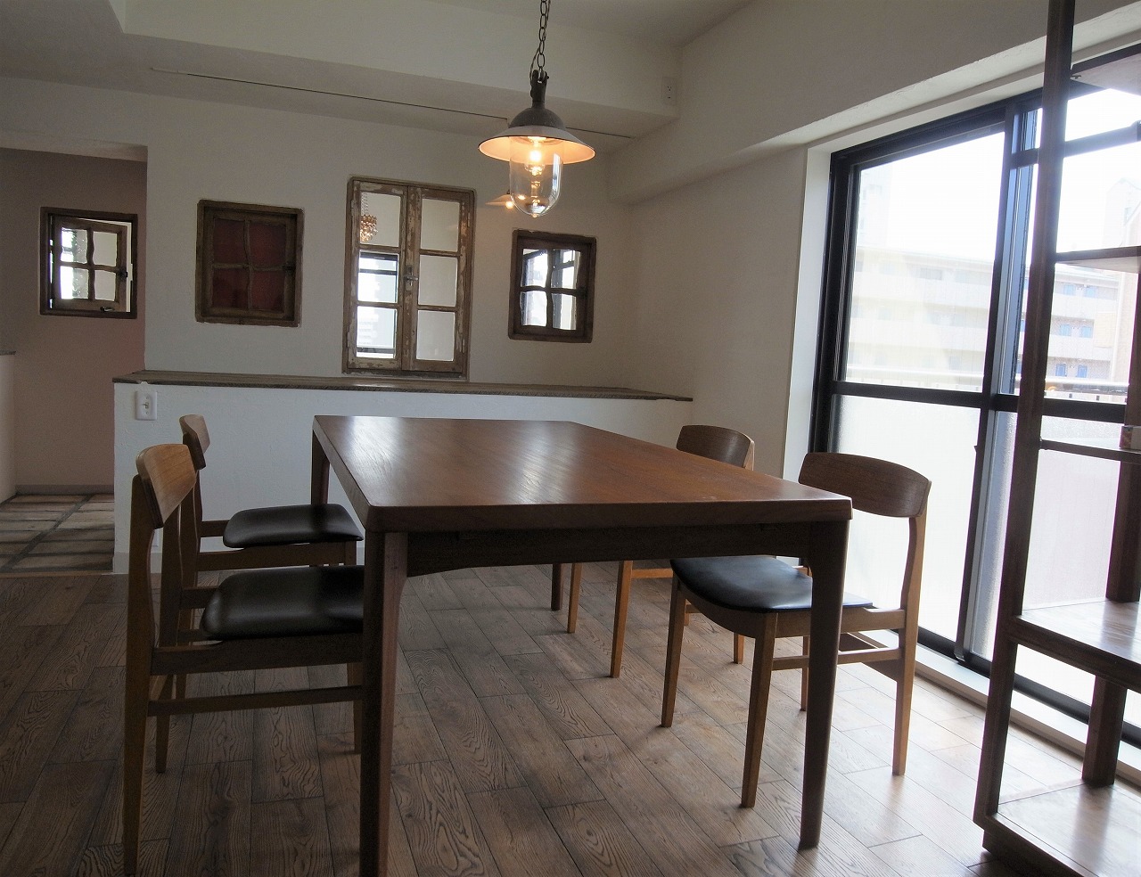 リノベーション 欧風ヴィンテージリノベ 天白区T様邸 LDK 漆喰の壁やデザイン内窓など、細部までこだわったリノベ物件。建具はヴィンテージ感ただようこだわりのオーダーもの。床材も雰囲気に合わせた深い色味を使用しました。 Dining 建具に合わせたウォルナットのダイニングセットが映えます。 Kitchen 部屋の雰囲気に合わせたヴィンテージスタイル。 Washroom 古材やタイルをふんだんに使用した洗面 Restroom 洗面と合わせた古材を腰高まではり統一感をだしました。 一覧へ 前へ 次へ