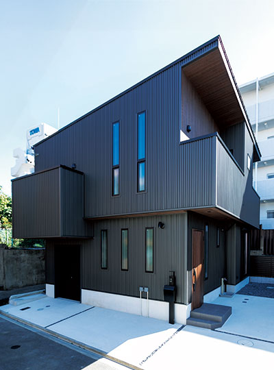 ラックの角波ガルバで統一したヴィンテージライクな外観。
