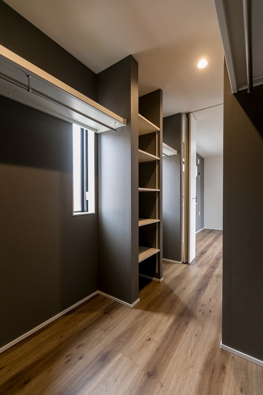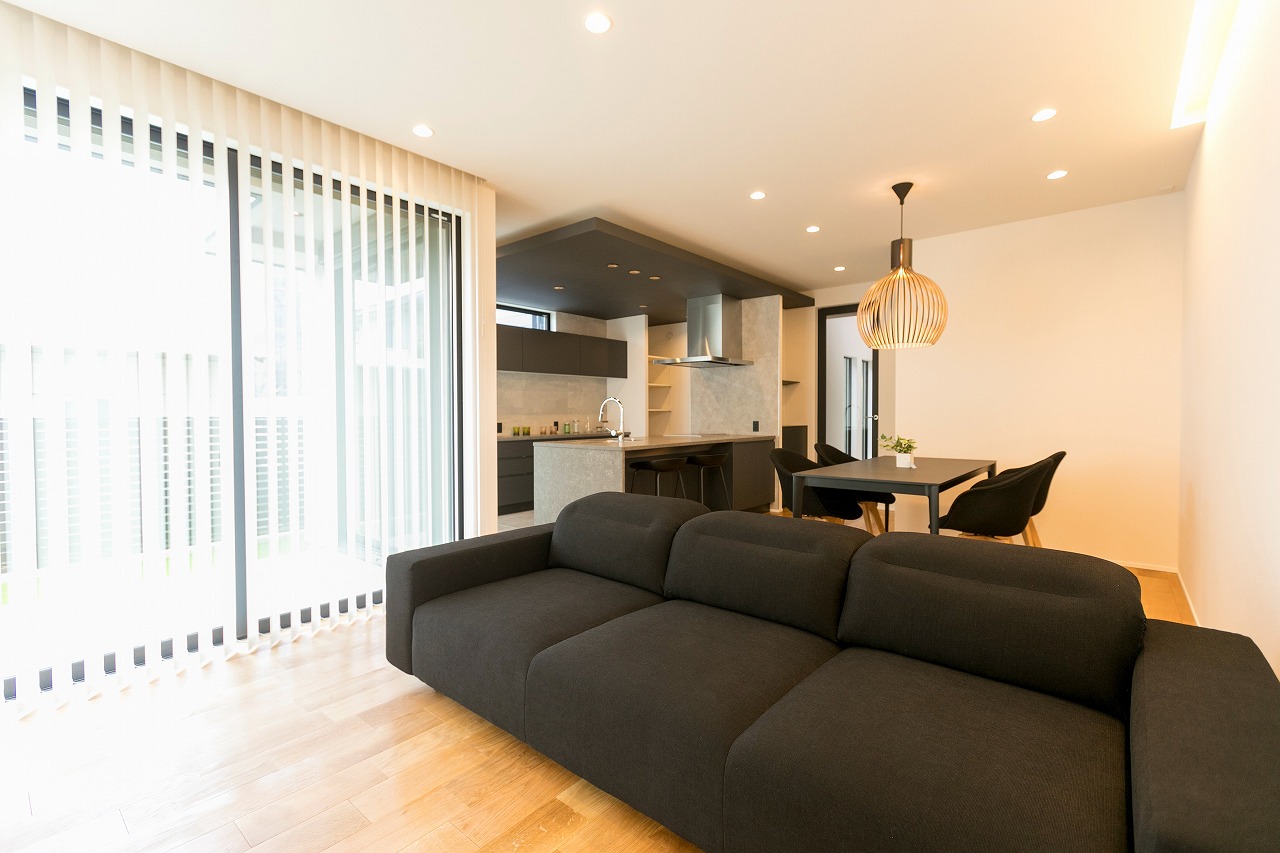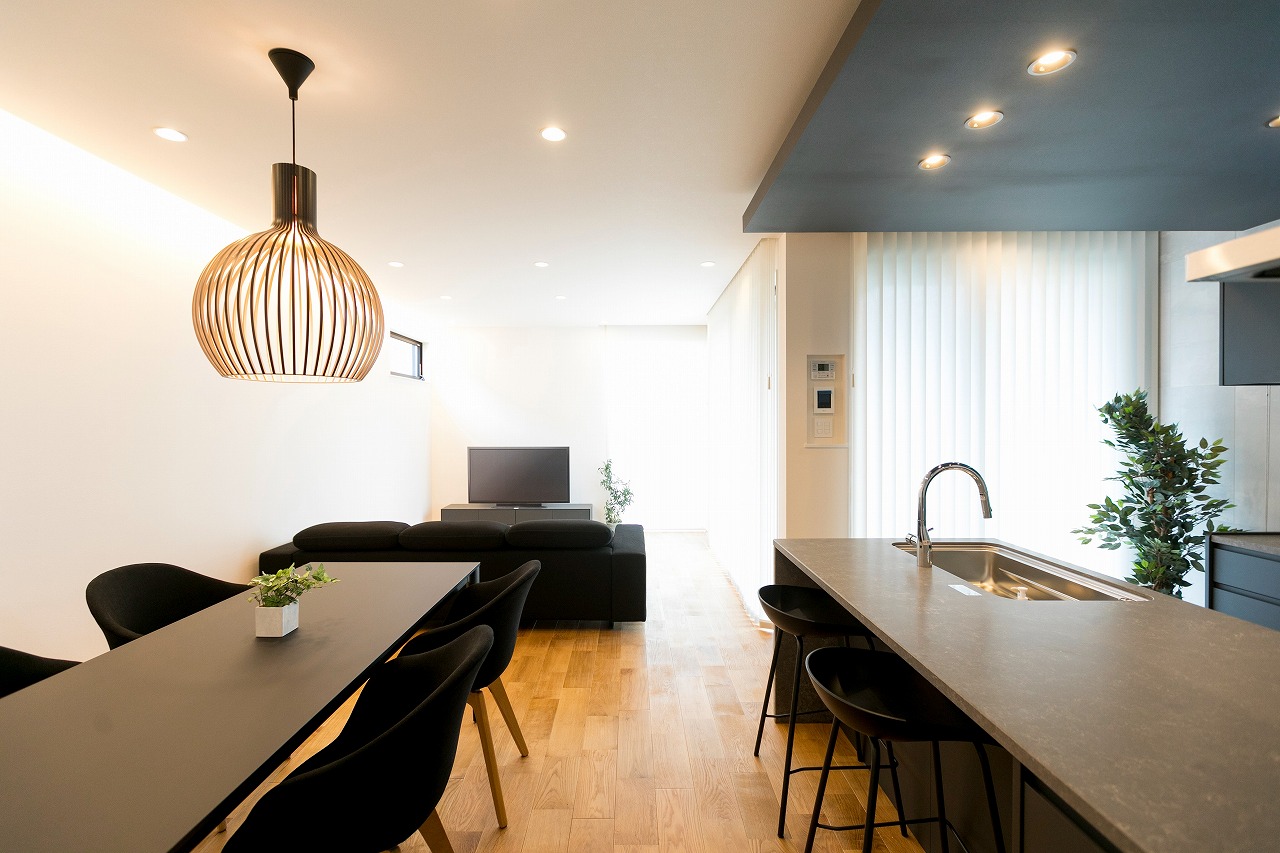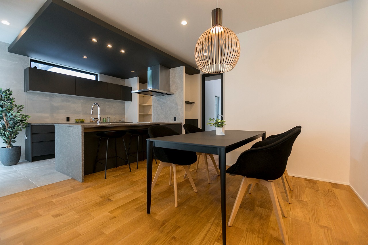 注文住宅 ミニマルで洗練された、黒と木目が調和した家 蟹江町O様邸 Exterior Living & Dining & Kitchen Entrance Washroom Walk-in Closet Bed Room 一覧へ 前へ 次へ