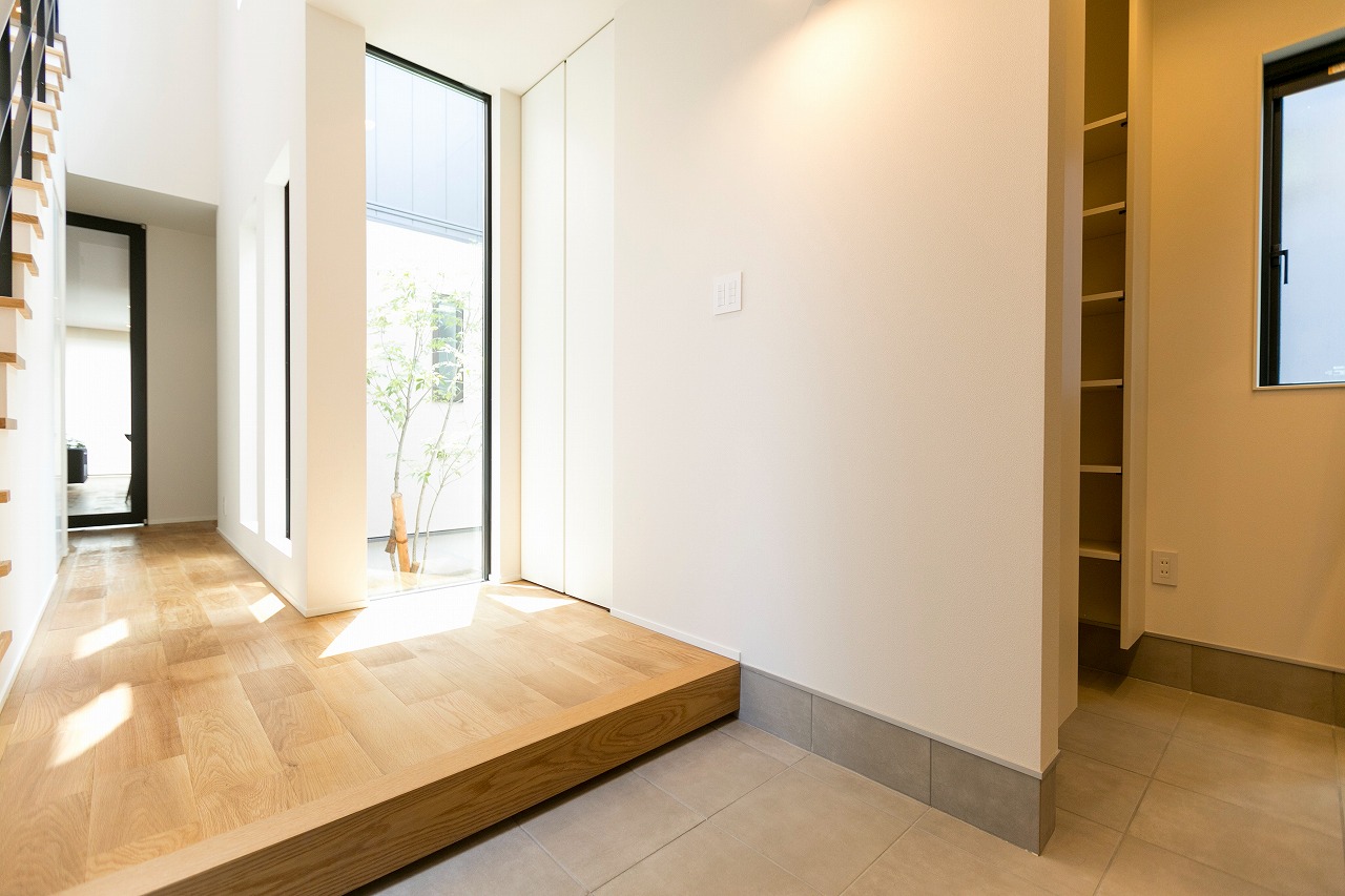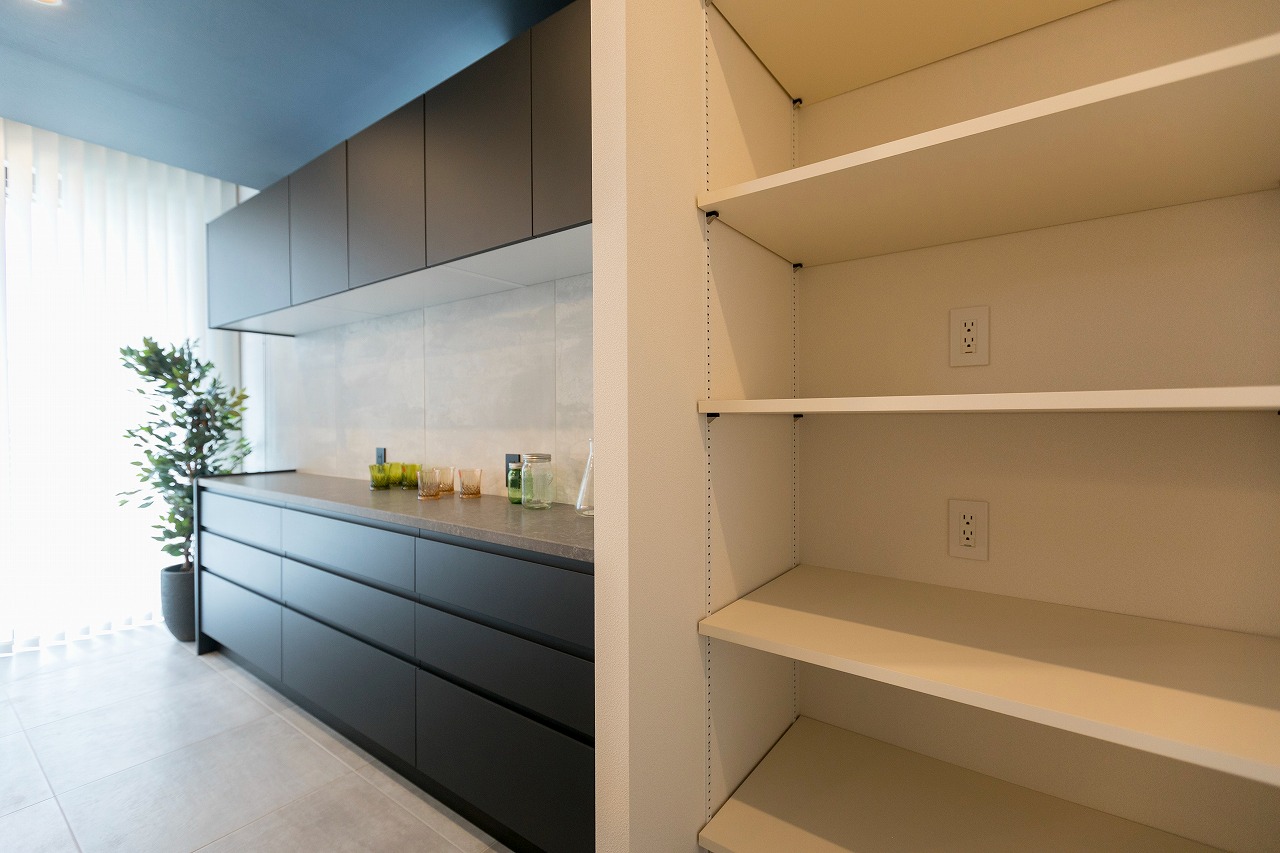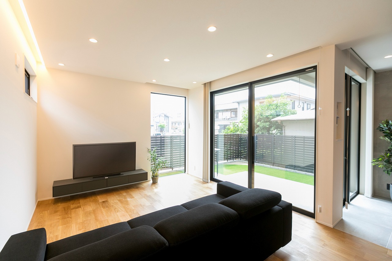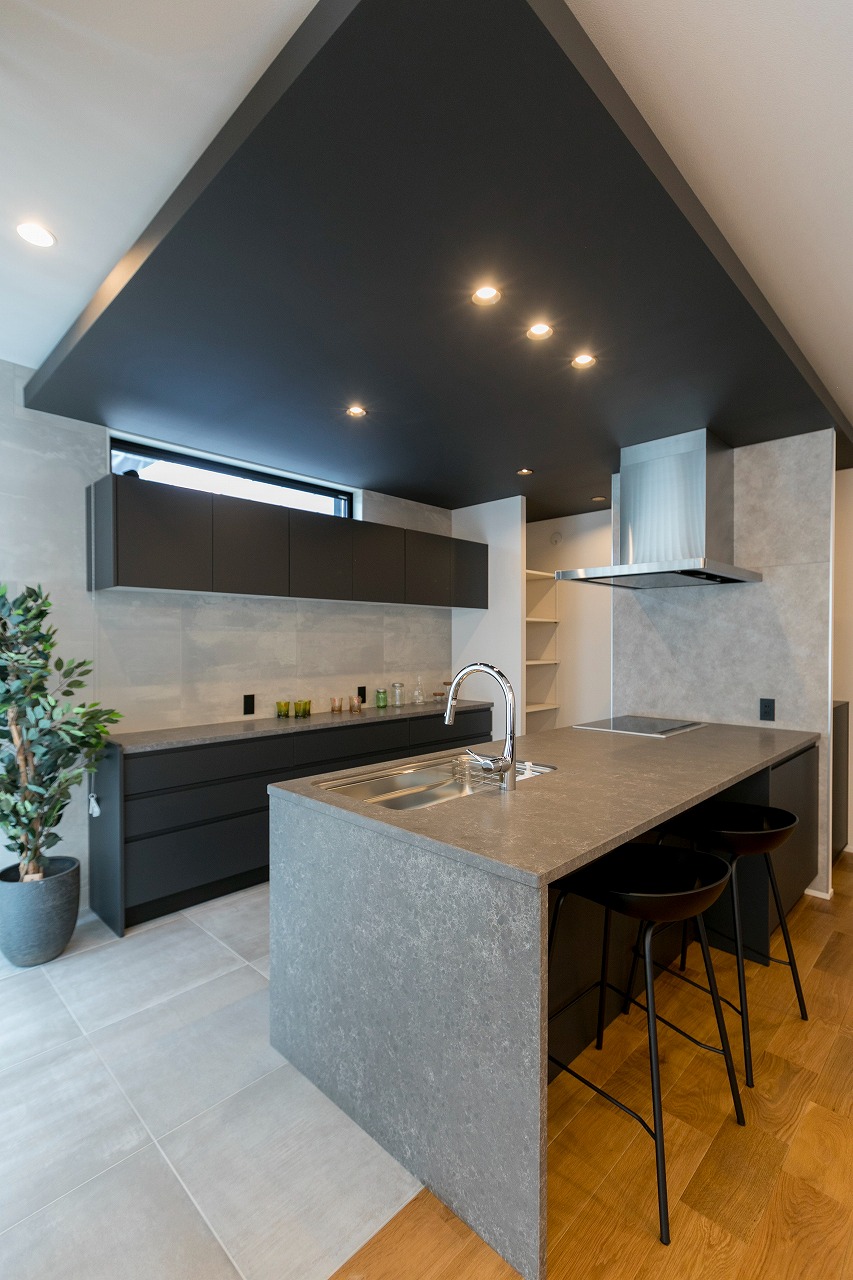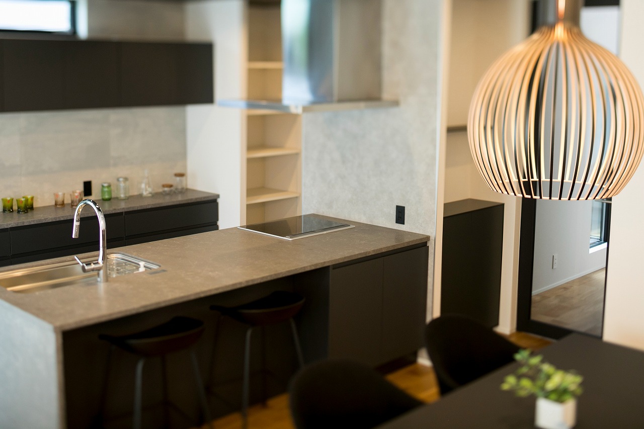 注文住宅 ミニマルで洗練された、黒と木目が調和した家 蟹江町O様邸 Exterior Living & Dining & Kitchen Entrance Washroom Walk-in Closet Bed Room 一覧へ 前へ 次へ
