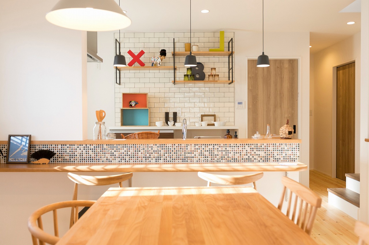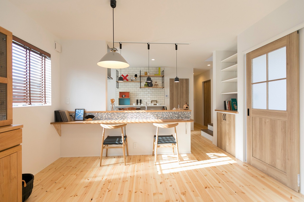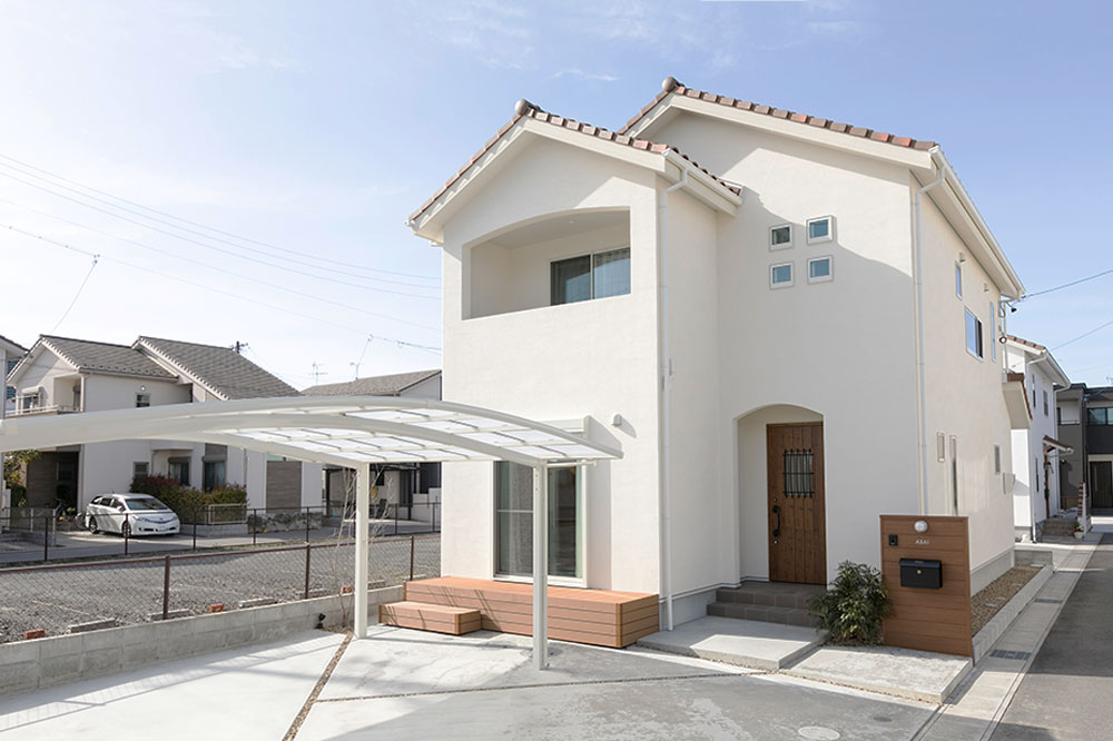 注文住宅 ほどよくフェミニン〜南欧カントリーハウス 弥富市A様邸 Exterior 瓦屋根と漆喰の塗壁がフェミニンな印象を与えてくれるこだわりの南欧カントリーハウスです。玄関のアーチ壁や小窓のアクセントなど細部までこだわったかわいらしいお家に仕上がりました。 Living & Dining モモナチュラルの家具に合わせて、床はパイン材を使用。 Kitchen 腰壁にタイルを使用したりとこだわりが詰まったキッチンです。 Japanese Room 和室は色合いを揃えつつ少し落ち着いた印象に Kids Room 元気の出るビタミンカラーの子供部屋 Master Room 一覧へ 前へ 次へ