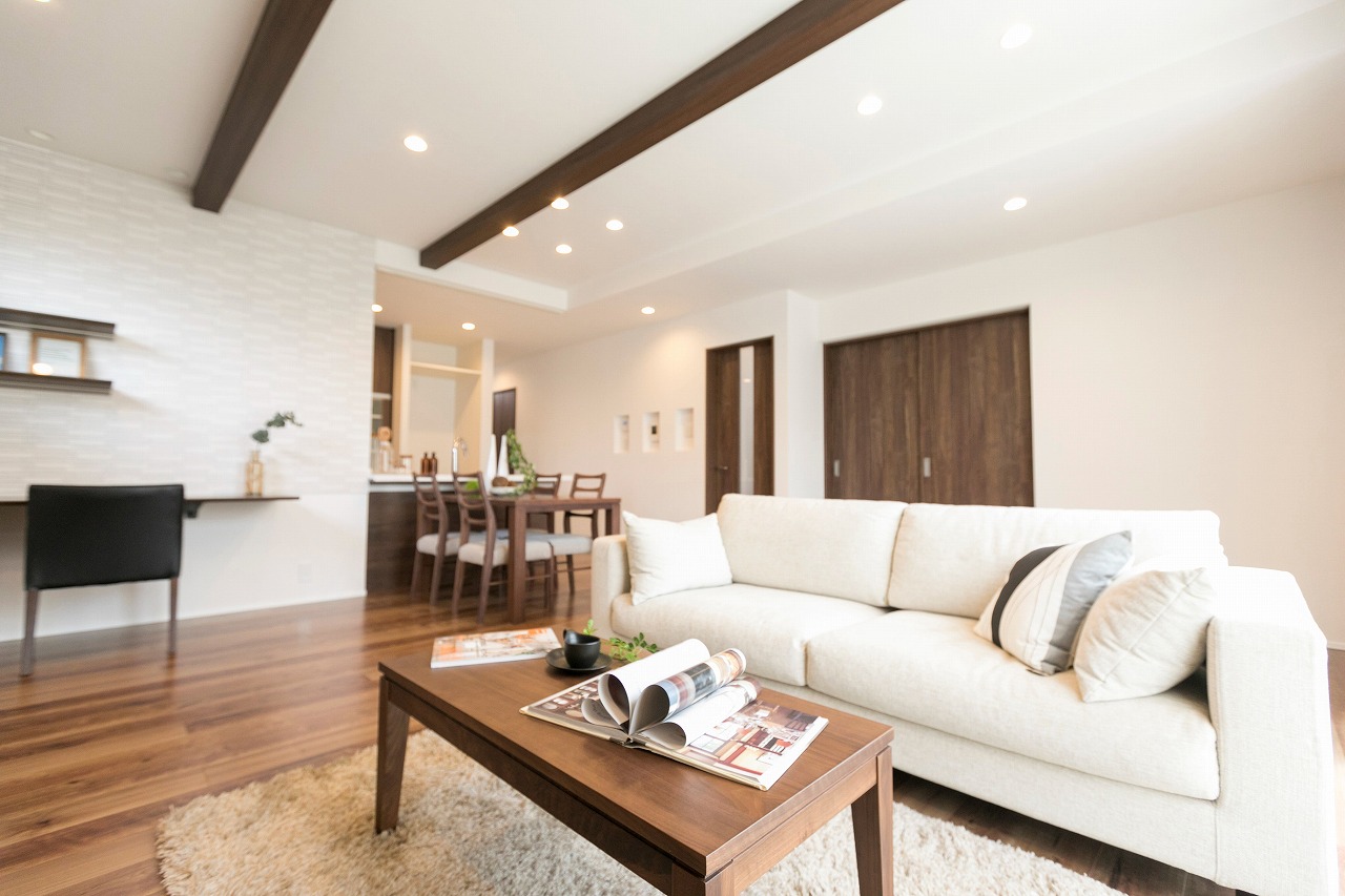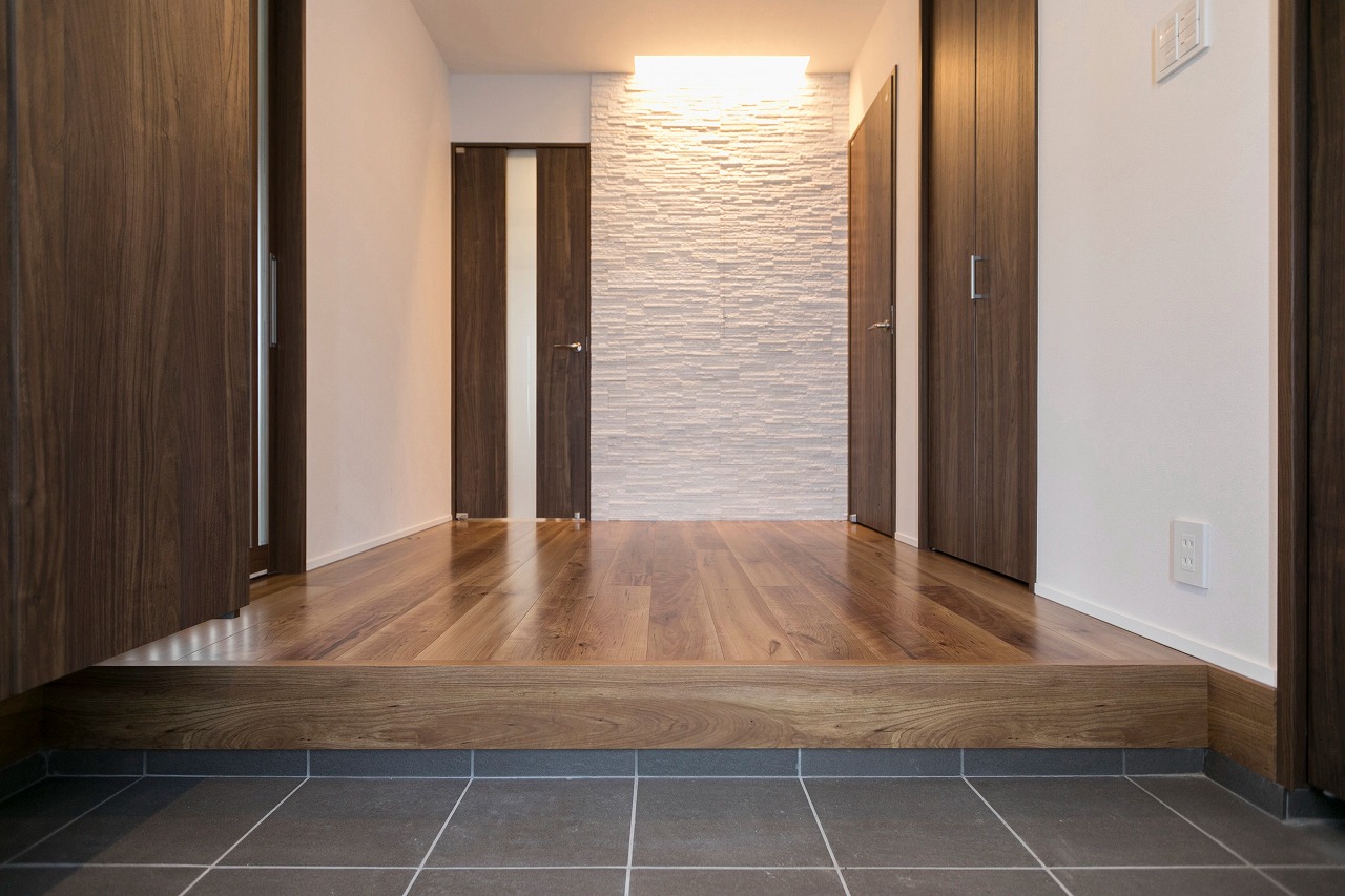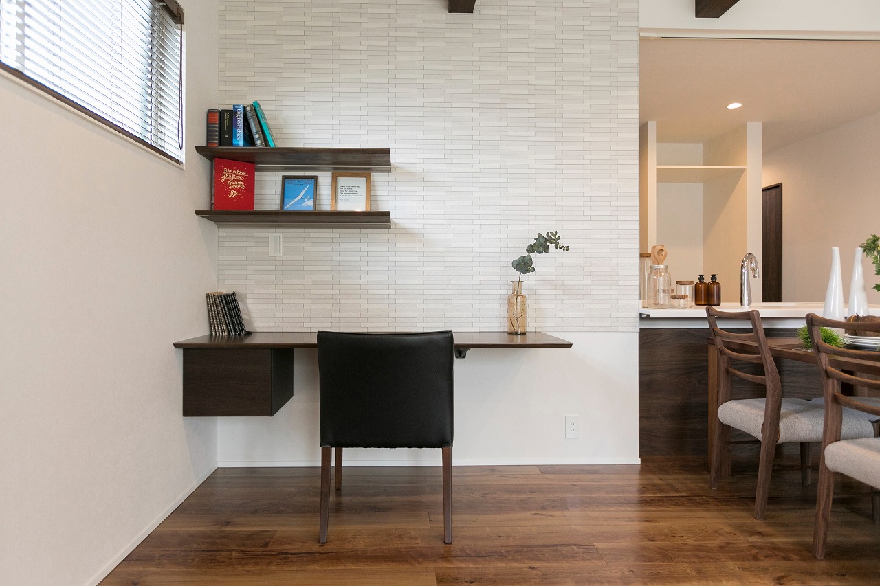 注文住宅 重厚感あるウォールナットをベースにした家 蟹江町H様邸 Exterior ドイツ製の塗り壁Stoを使用し、黒×白のモダンな組み合わせに木目調をプラス。門壁にはスクエアのブロックを積み上げ、ジョリパッドでアクセントを。シンボルツリーにはトネリコを。 Living Panasonicアーキスペックフローリングの床と化粧梁のある天井 Dining Workspace Japanese Room 縦格子の扉と板の間を取り入れたモダン和室 Bed Room Walk-in Closet Loft 一覧へ 前へ 次へ