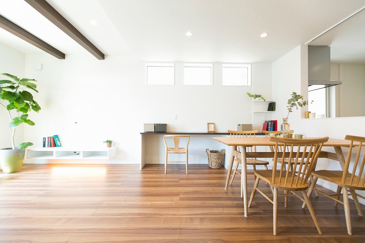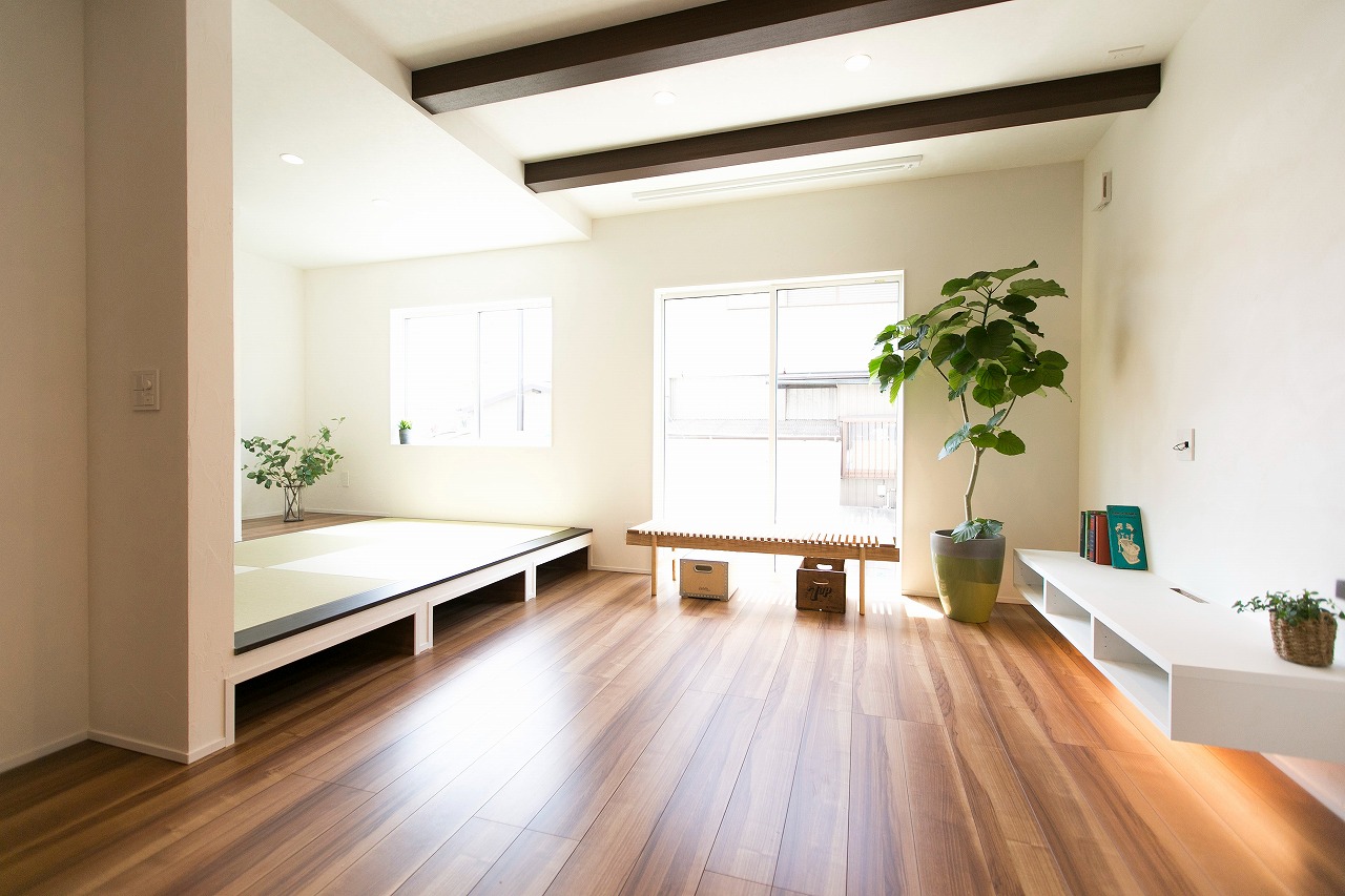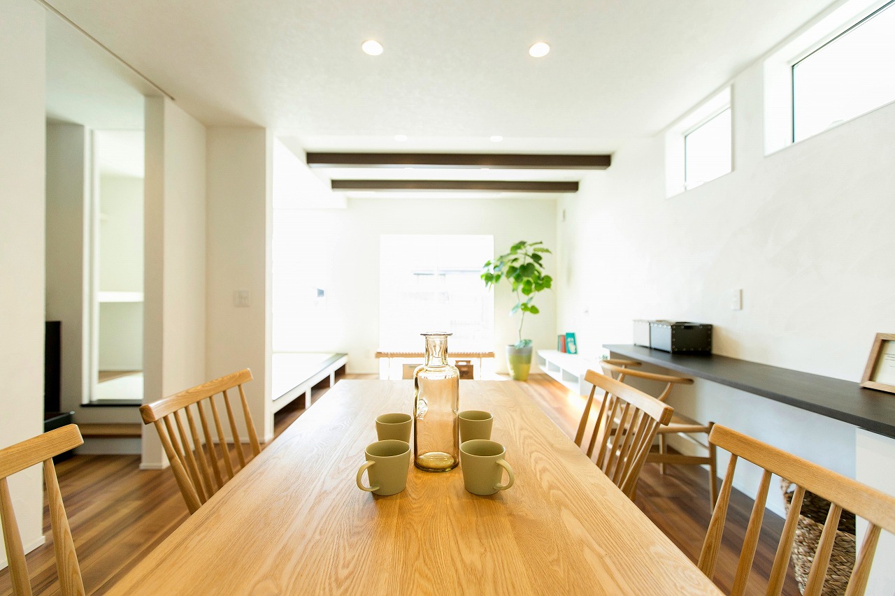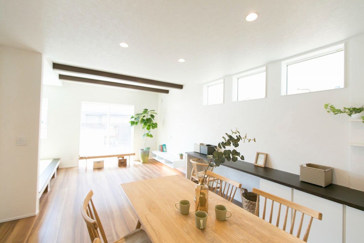 注文住宅 LDKを漆喰で仕上げたシンプルモダンな家 蟹江町H様邸 Exterior Living & Dining Japanese Room Wall storage Washroom 一覧へ 前へ 次へ