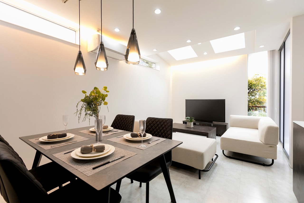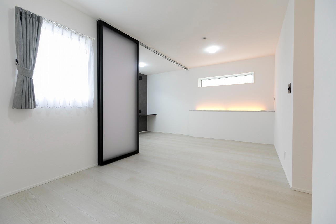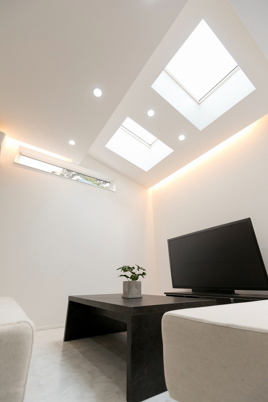 注文住宅 ホテルライクなモノトーンハウス 名古屋市K様邸 Exterior 外観から内観まで全てモノトーンでまとめたK様邸。北側玄関の為極力窓を少なくシンプルに、サイディングの貼り分けで、かっこよく仕上がりました! Dining & Living 天窓が二つ並んだ明るいリビング Kitchen TOTOのペニンシュラ型キッチンもモノトーンでキリっと Laundry キッチンとお揃いの洗面化粧台は機能性も抜群! Restroom Walk-in Closet Bedroom 主寝室の隣にはかっこいい男の書斎スペース 一覧へ 前へ 次へ