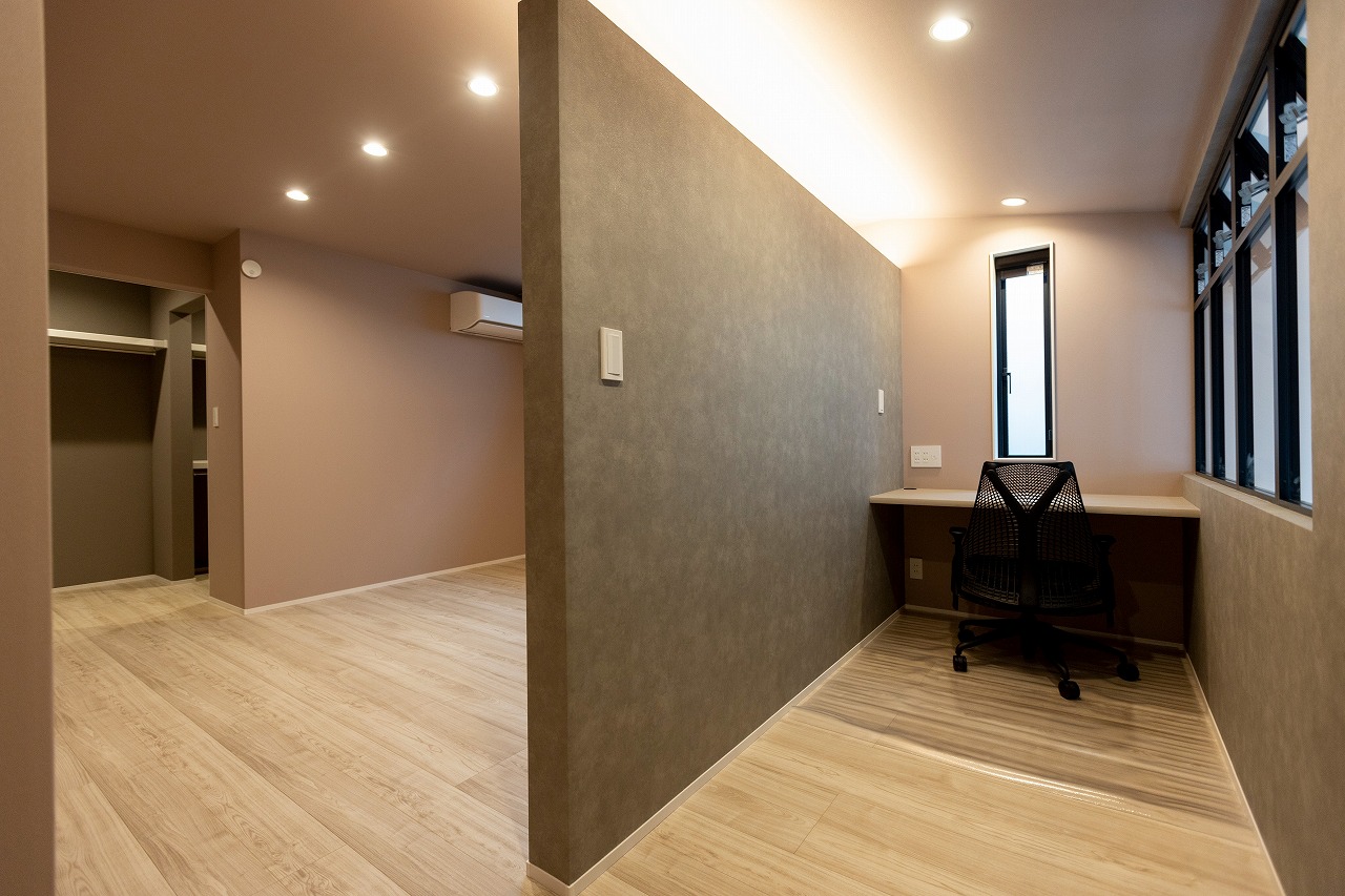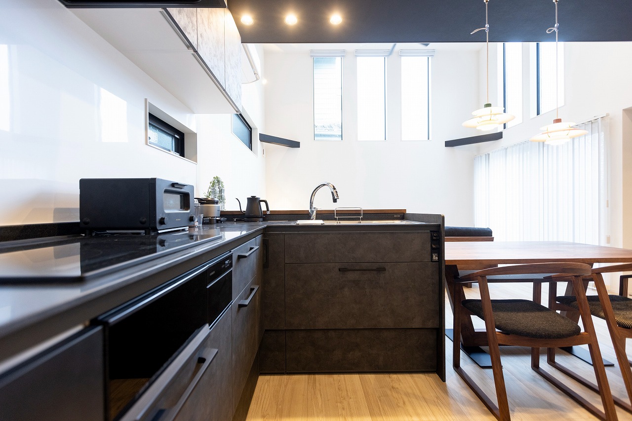 ガレージハウス注文住宅 居心地と機能美が融合したガレージハウス 蟹江町M様邸 モダン+ウォールナットが重厚感を引き出すガレージハウス Exterior 正面と背面の色を変えた外壁はドイツSto社の塗り壁。ガレージのオーバースライダーシャッターのメタリック感が存在感をプラス。玄関アプローチの階段もあえてモルタル仕上げで無機質な印象を。 Living 吹き抜けの解放感あるリビング Kitchen 考えられた動線を実現させたL型キッチン Dining Study 主寝室横には吹き抜けも見える書斎。 Garage カーキ色の壁にしたガレージの奥にはアウトリビングな書斎。 一覧へ 前へ 次へ