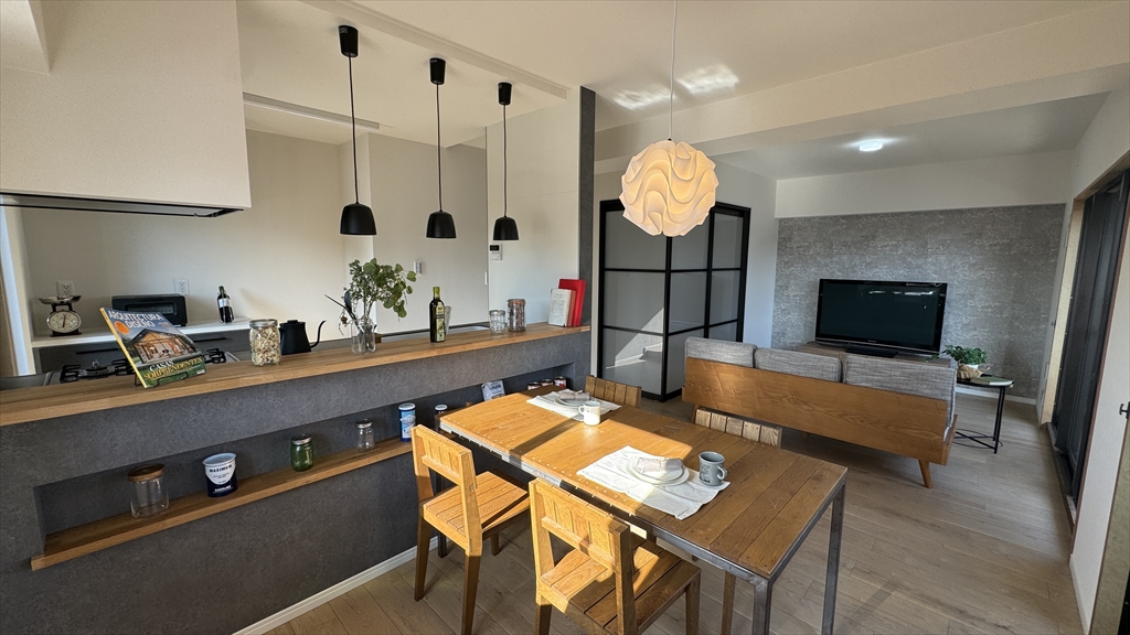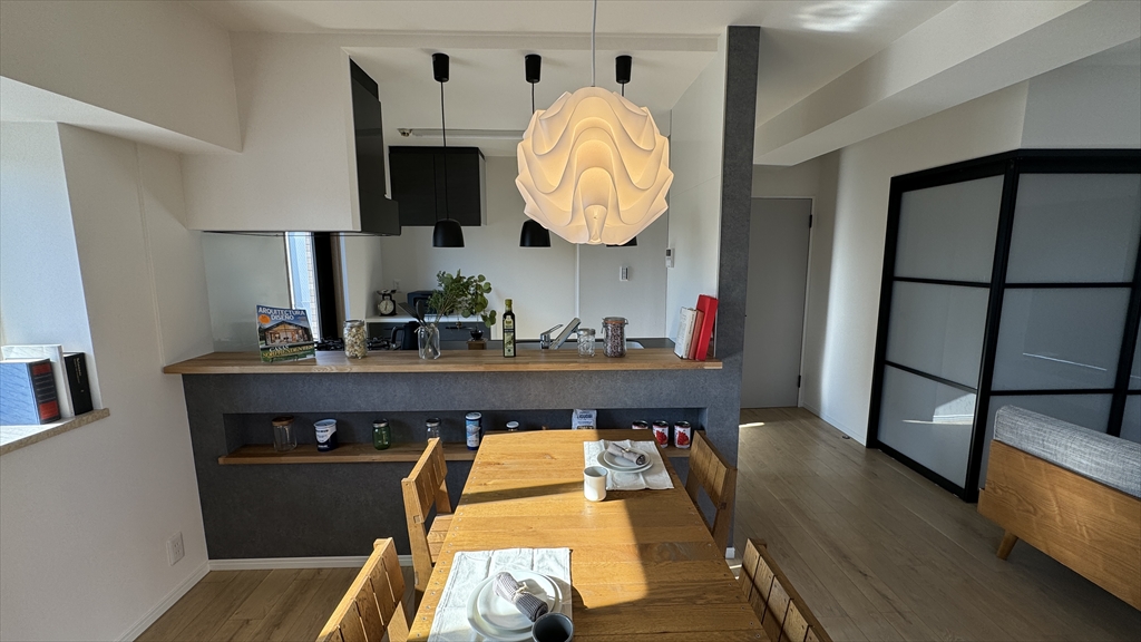 オープンな空間でも共通の視点を設けることで家族やゲストが集まりやすくなります。例えばキッチンカウンターやダイニングテーブルなど、共通のアクティビティスペースを設けるなどです。