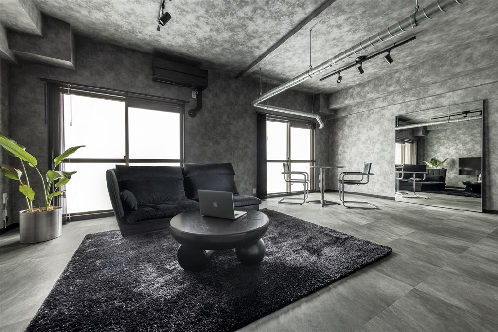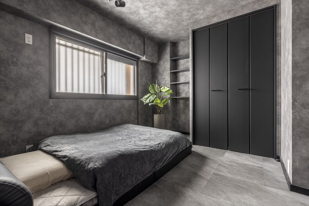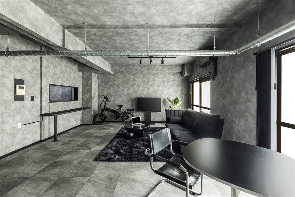 ・リノベーション前は白だった天井や建具も全て黒に変更。かっこよく落ち着きのある部屋に。