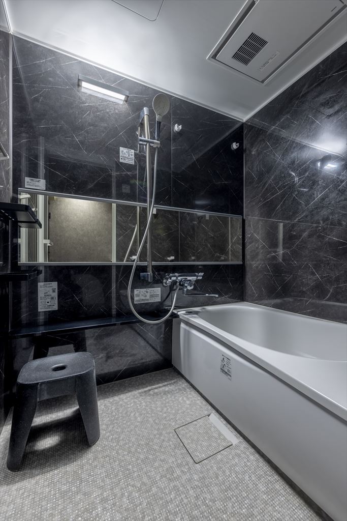 ・お風呂や洗面もできる限り黒にして統一感を出している。