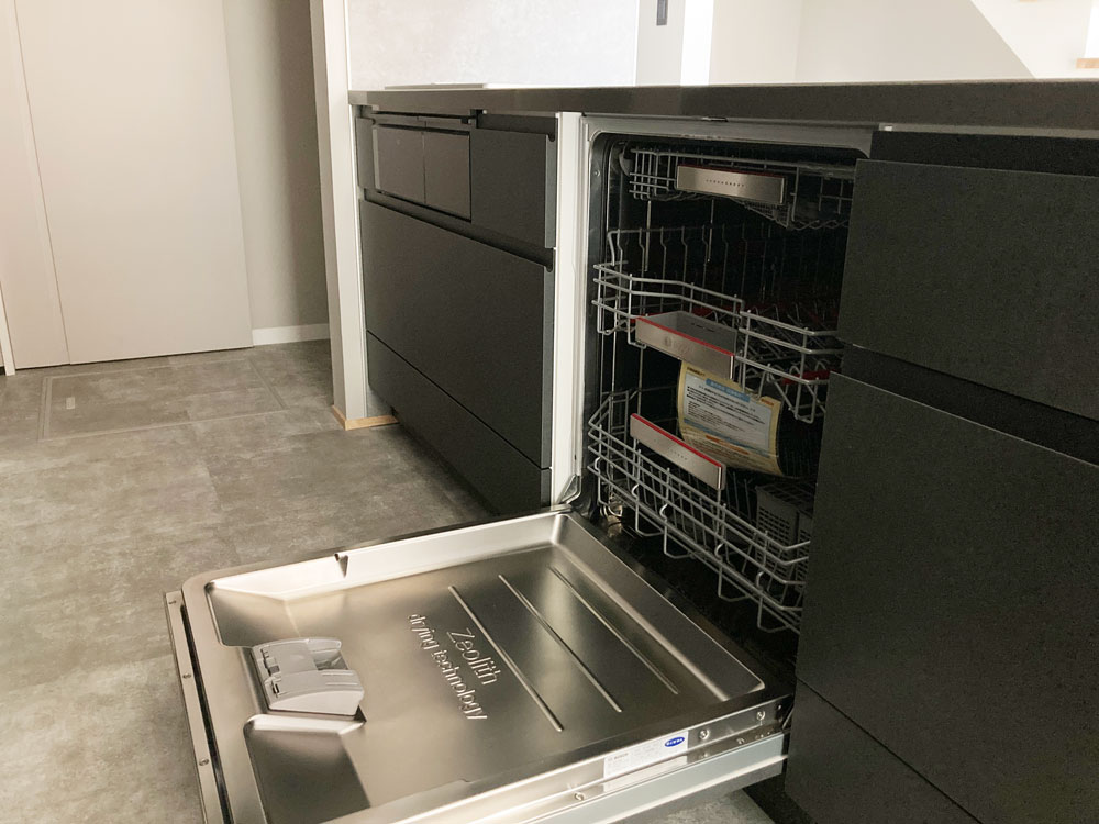 フロントオープンの食洗器はドイツ発祥の世界的な家電メーカー、ボッシュ製。大容量の食器を洗う事ができ、予洗い不要で頑固な汚れもキレイに落とします。