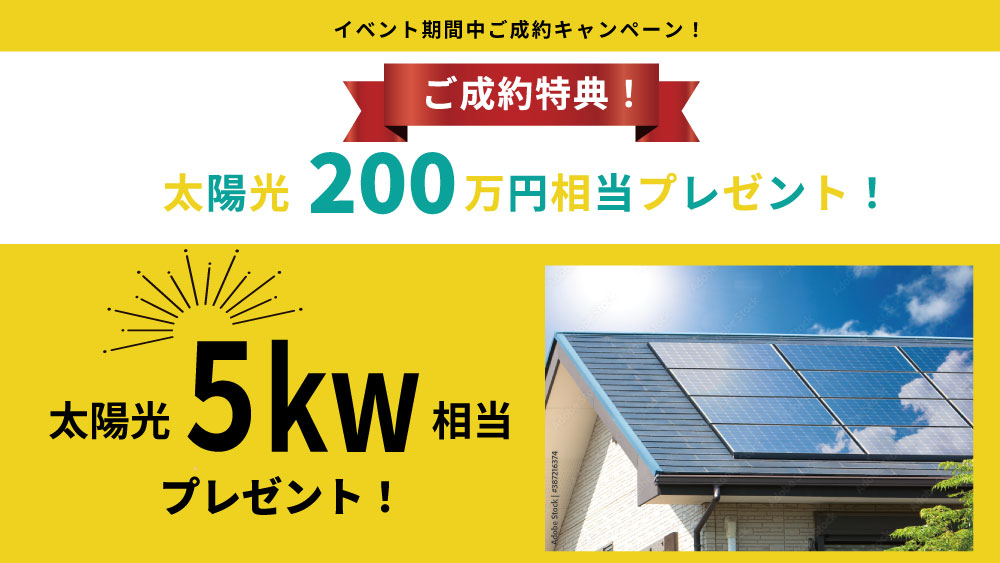 【特典】ご成約特典として太陽光5kwをプレゼント!
