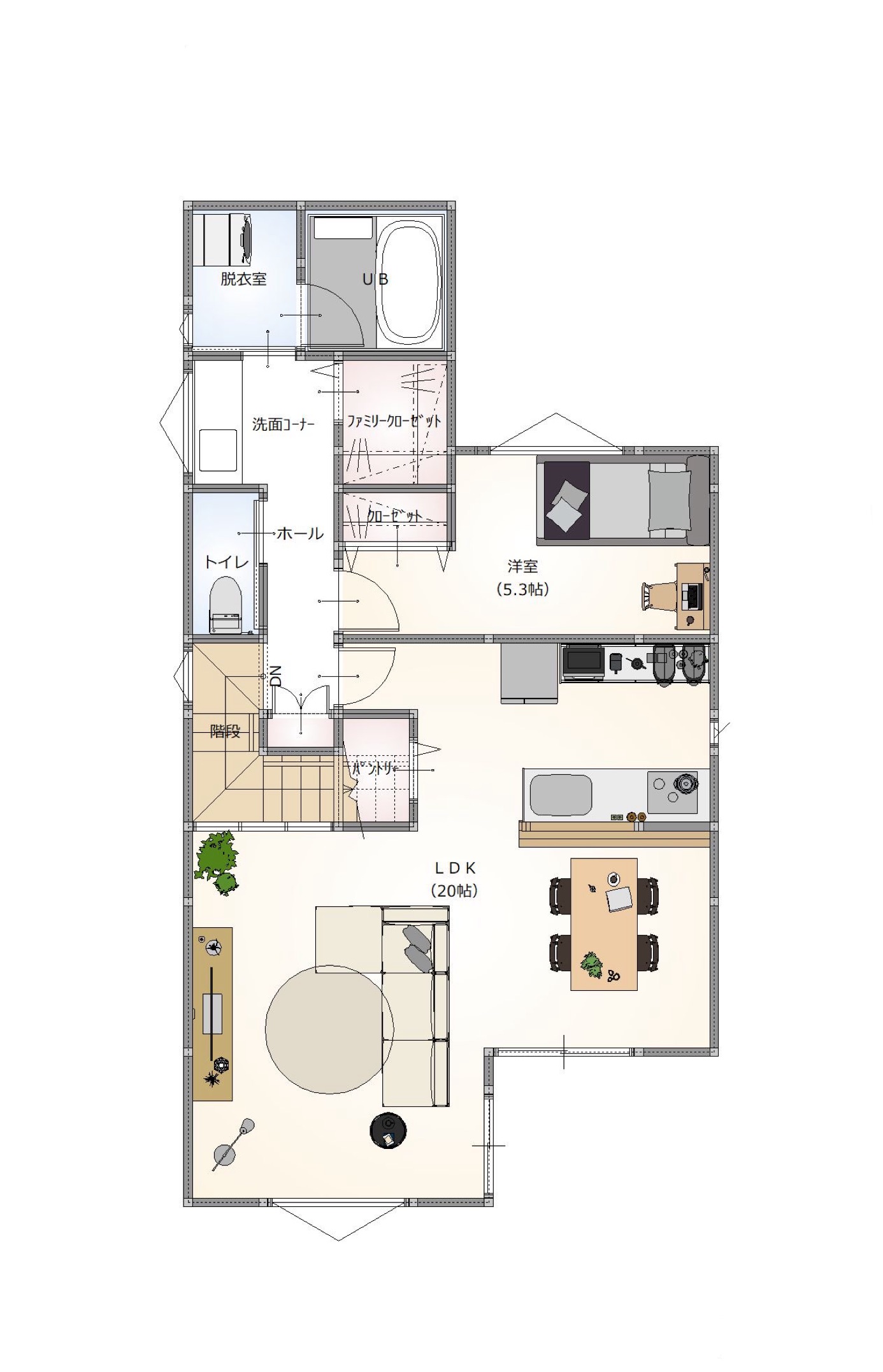 ・20帖のリビングが実現! 2階リビングにすることで、陽当りや視線も気になりません。