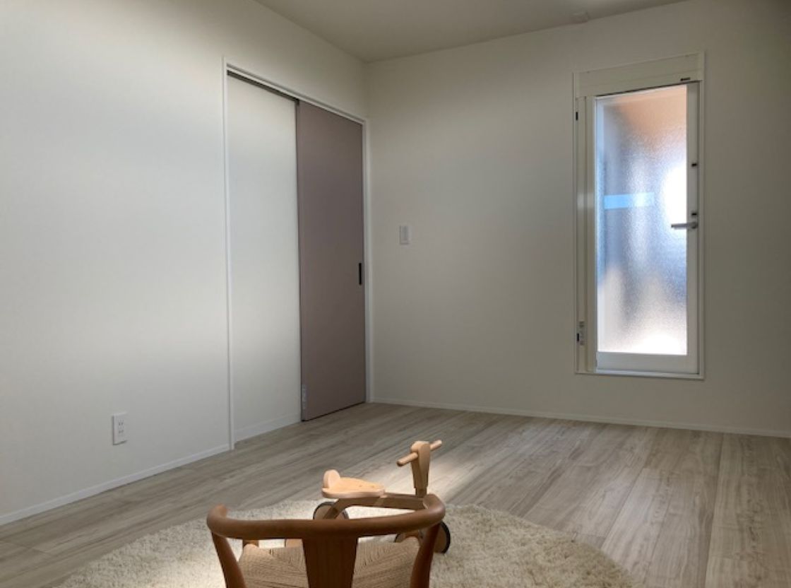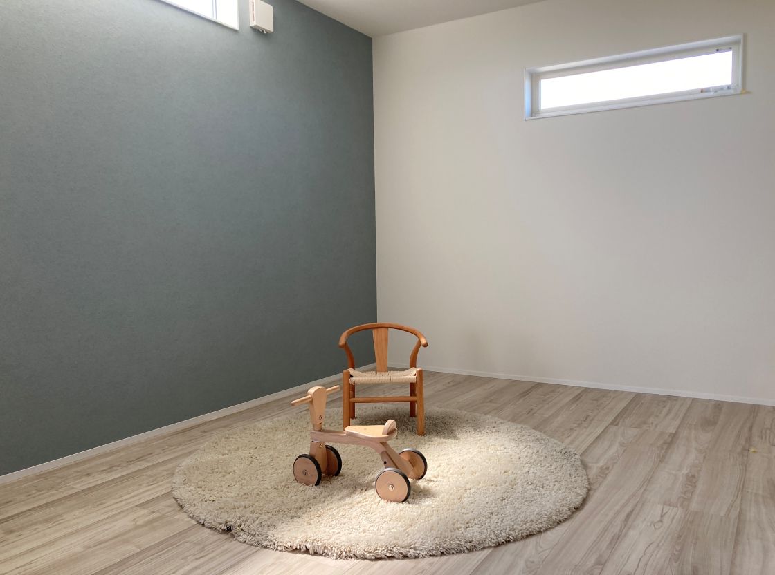 玄関前の庭は視線を気にせず遊べるプライベート空間。7.5帖の多目的室は遊び場から収納、子供部屋まで自在に使えます。