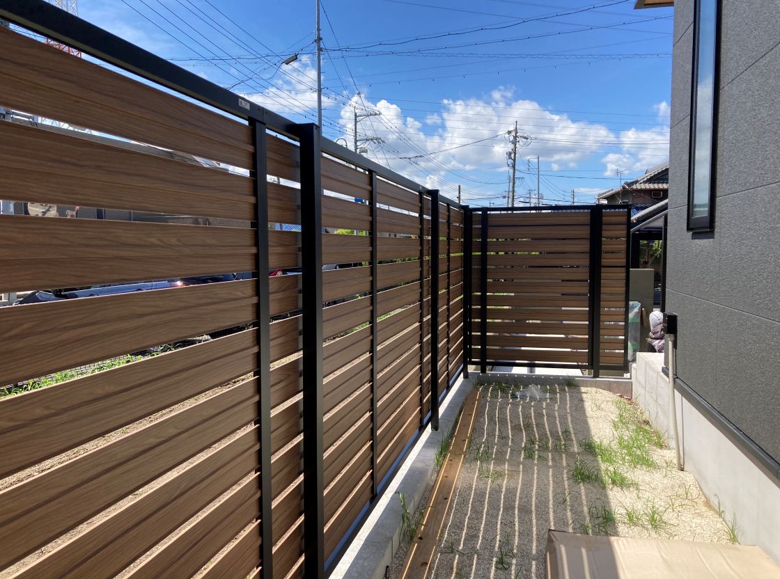長い敷地を活かしたセミクローズアプローチ。門塀と高基礎で視線を遮り、安心して暮らせる家に。水害対策にも有効です。
