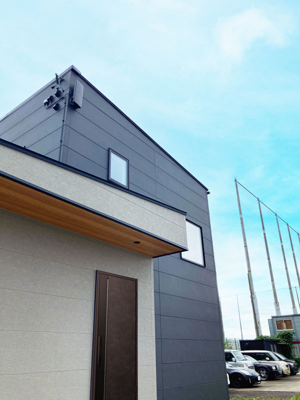 重厚感と温もりを兼ね備えた外観デザイン。さらに大きなFIX窓がポイントとなり存在感と解放感を演出します。街並みに映える存在感と、室内に光をたっぷりと取り込む解放感を両立しています。