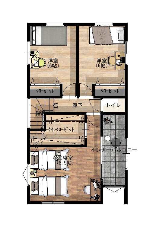 参考プラン:2階 インナーバルコニーでくつろぐことも◎