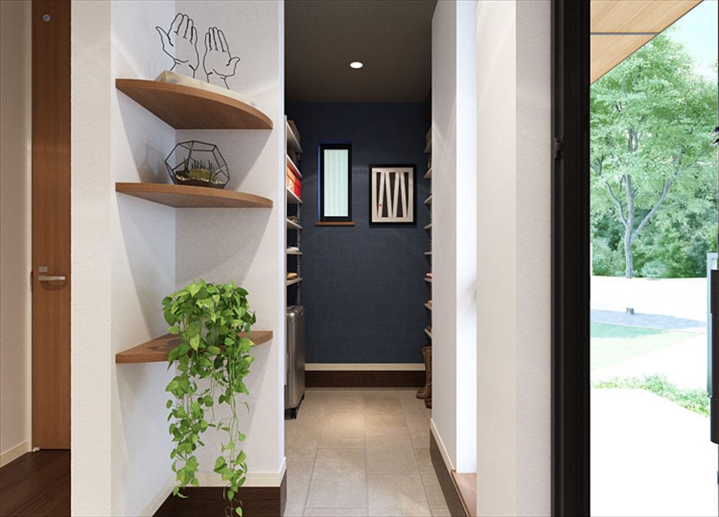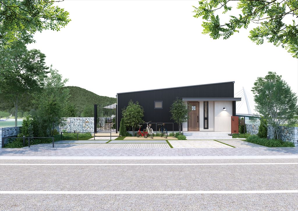 居住空間をワンフロアに集約した理想の住まいです。外とゆるやかにつながる半屋外空間は日々の暮らしを豊かに彩ります。