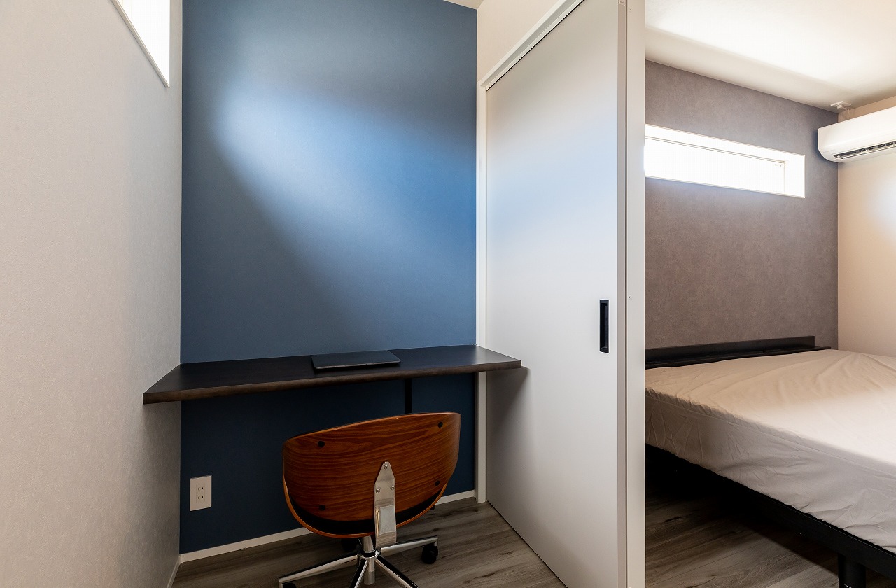 ドアを閉めれば個室になり、開ければ寝室とつながって、分譲ベースでカスタマイズしてもらったんです。